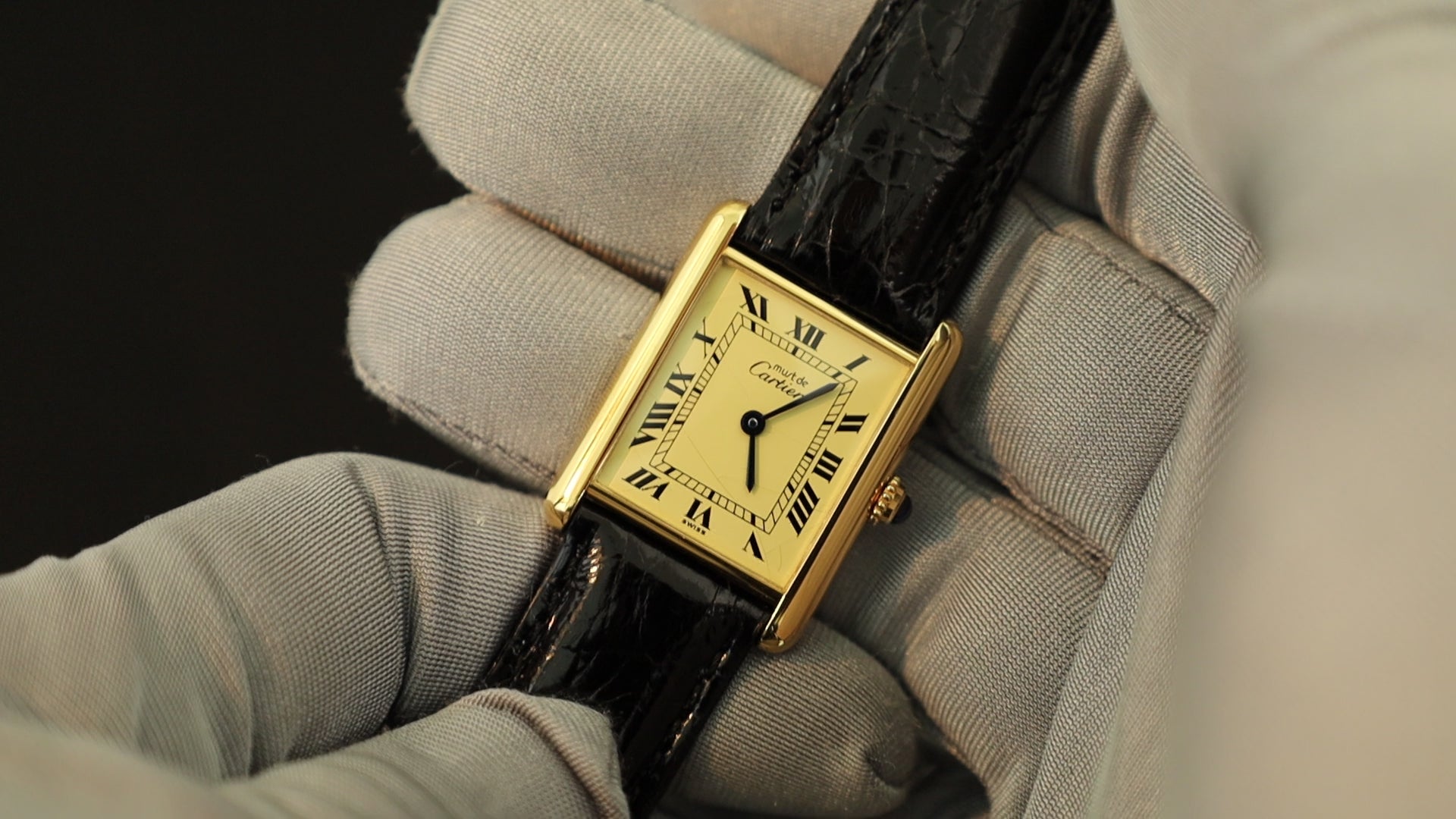 カルティエ マストタンク LM W1002753/590005 クォーツ Cal.90 SV925 革 純正尾錠(GP) アイボリーローマン文字盤 オーバーホール済み
