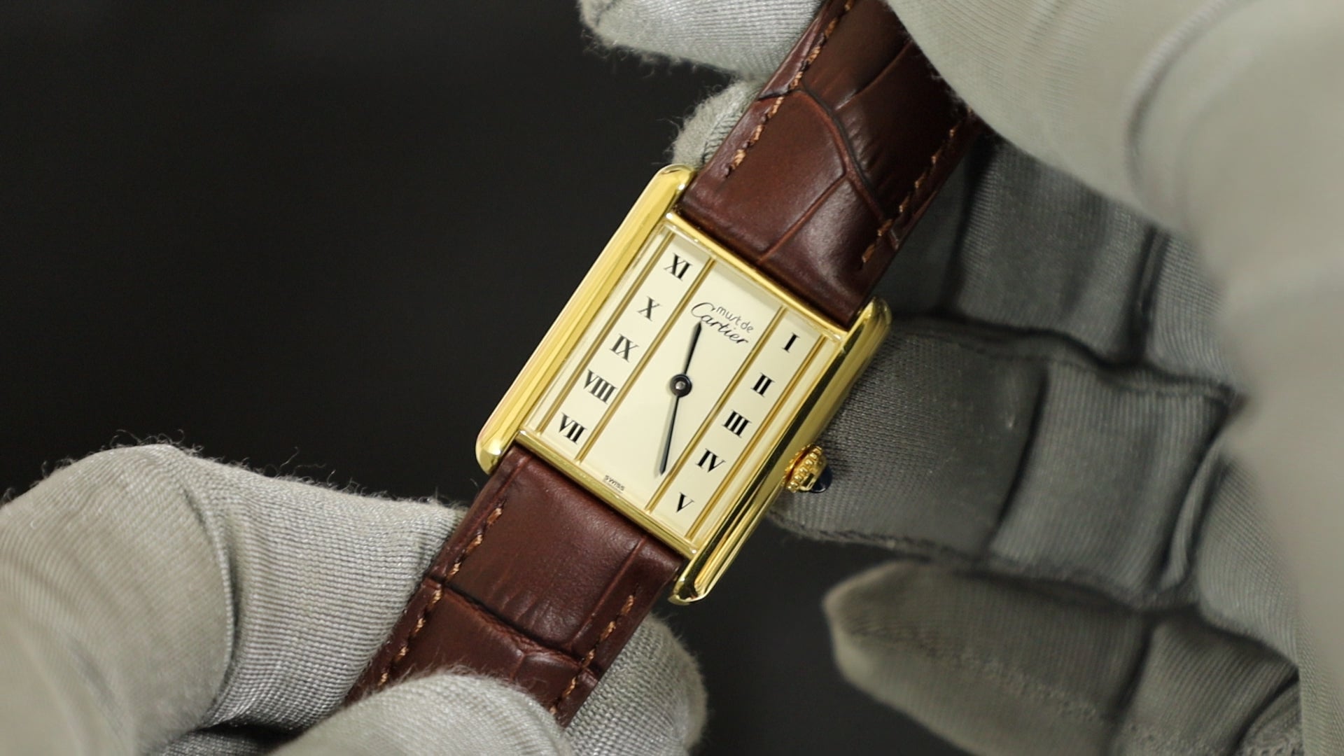 カルティエ マストタンク LM 590005 クォーツ Cal.90 SV925 革 純正Dバックル(GP)ストレートローマン文字盤(SWISS表記)オーバーホール済み 新品仕上げ済み