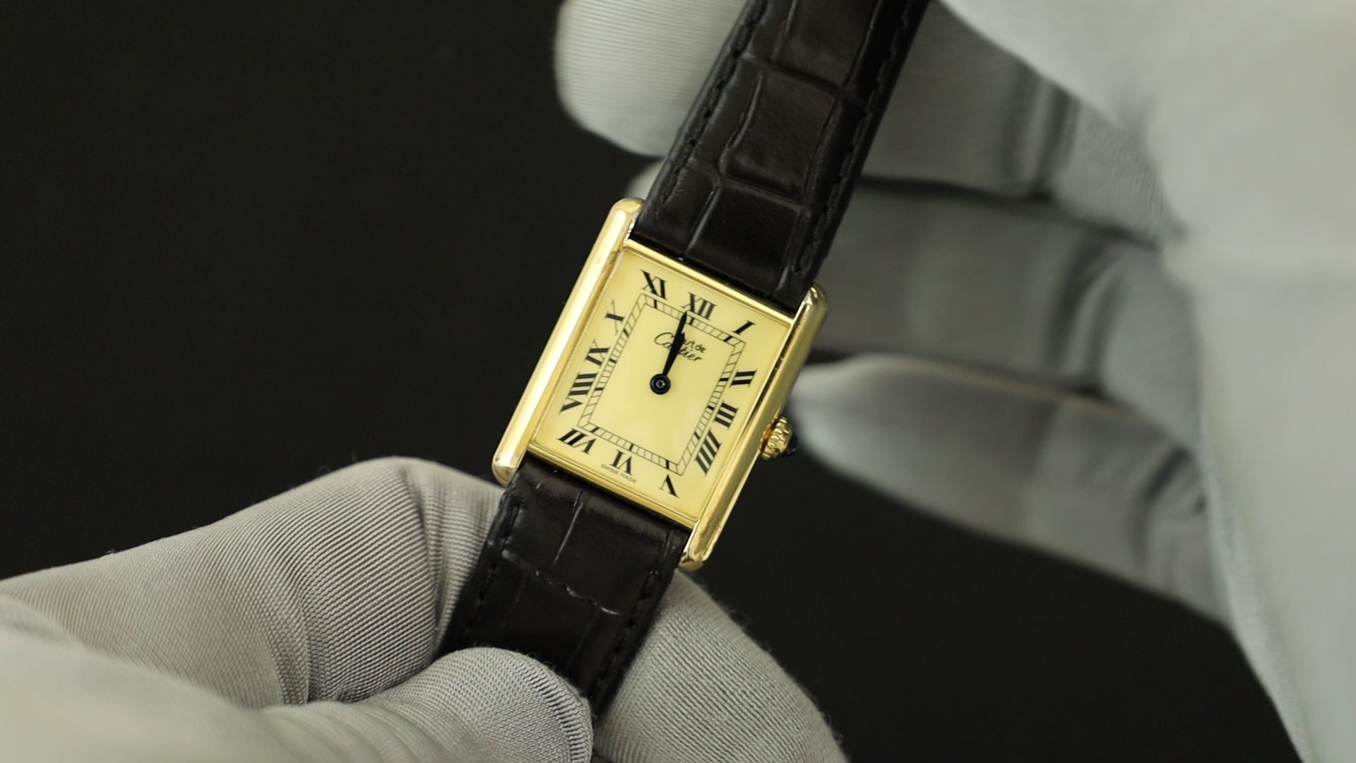 カルティエ マストタンク LM 1615 クォーツ SV925 革 純正尾錠(GP)アイボリーローマン文字盤 カルティエブティックにてコンプリートサービス済み