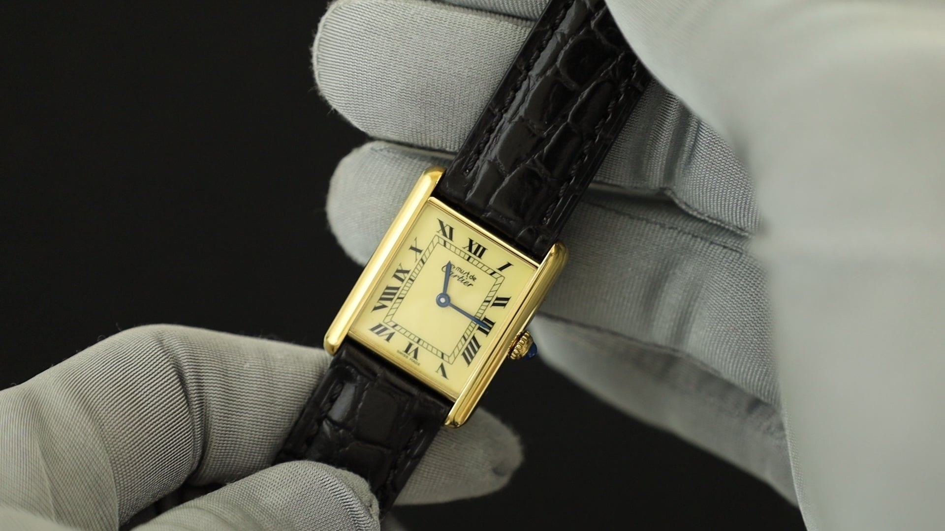 カルティエ マストタンク LM 590005 クォーツ SV925 革 純正尾錠(GP) アイボリーローマン文字盤 カルティエブティックにてコンプリートサービス済み