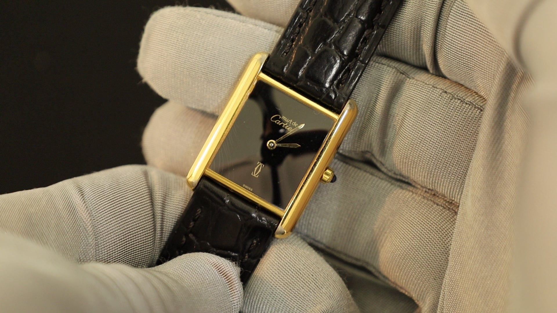 カルティエ マストタンク LM 681006 クォーツ Cal.81 SV925 革 純正尾錠(GP) ブラックオニキス文字盤 オーバーホール済み