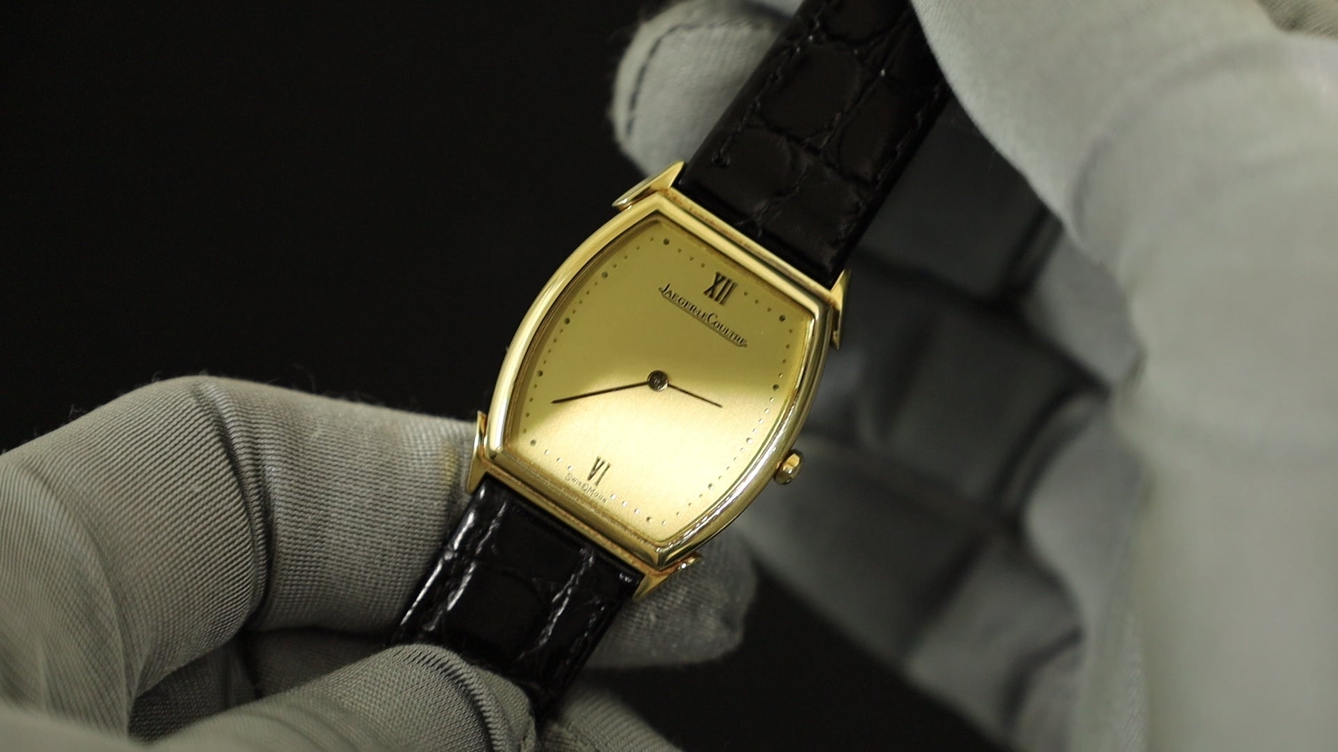 ジャガー・ルクルト ヴィンテージトノー 140.067.1 クォーツ Cal.- 750 革 純正尾錠(GP)ゴールド文字盤 保証書 冊子 オーバーホール済み