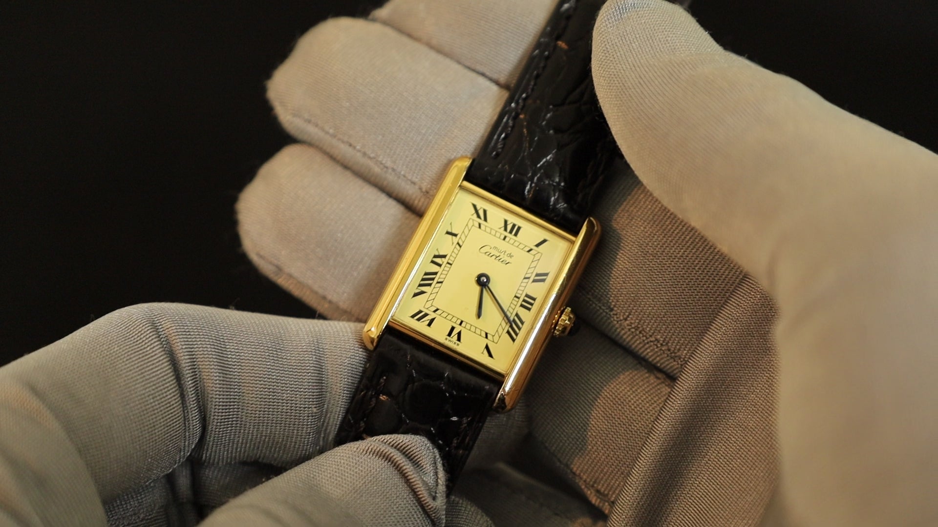 カルティエ マストタンク LM 590005 クォーツ Cal.90 SV925 革 純正尾錠(GP) アイボリーローマン文字盤 箱 保証書(1991年) オーバーホール済み