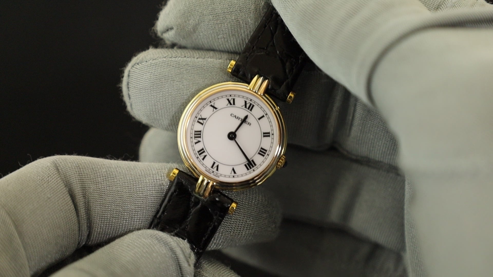 カルティエ ヴァンドーム VLC SM トリニティ 8100 クォーツ 750 革 純正尾錠(GP) ホワイトローマン文字盤 箱 カルティエブティックにてコンプリートサービス(フルメンテナンス)済み