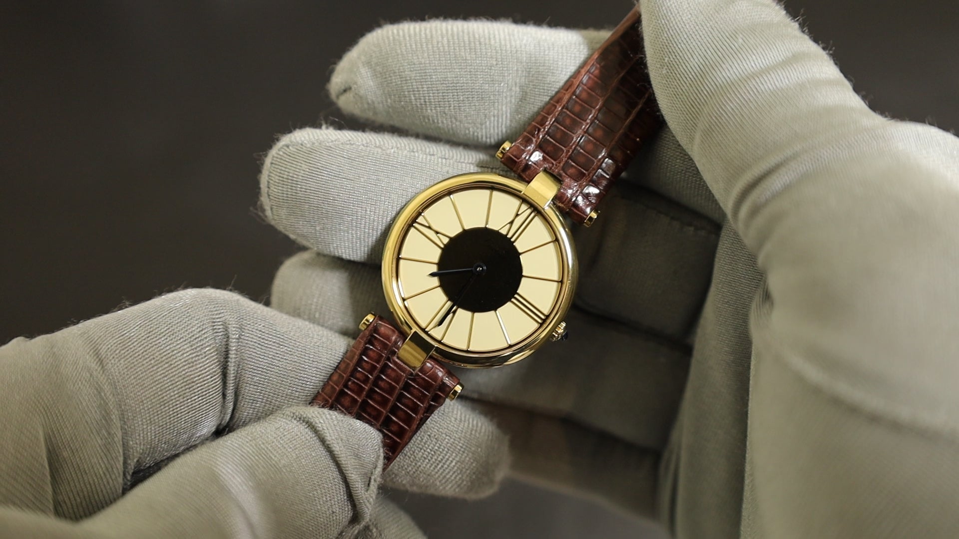 カルティエ マスト ヴァンドーム VLC LM W1001054 / 17 クォーツ Cal.81 SV925 革 純正ピンバックル(GP)アイボリークロワゾネ文字盤 箱 冊子 オーバーホール済み