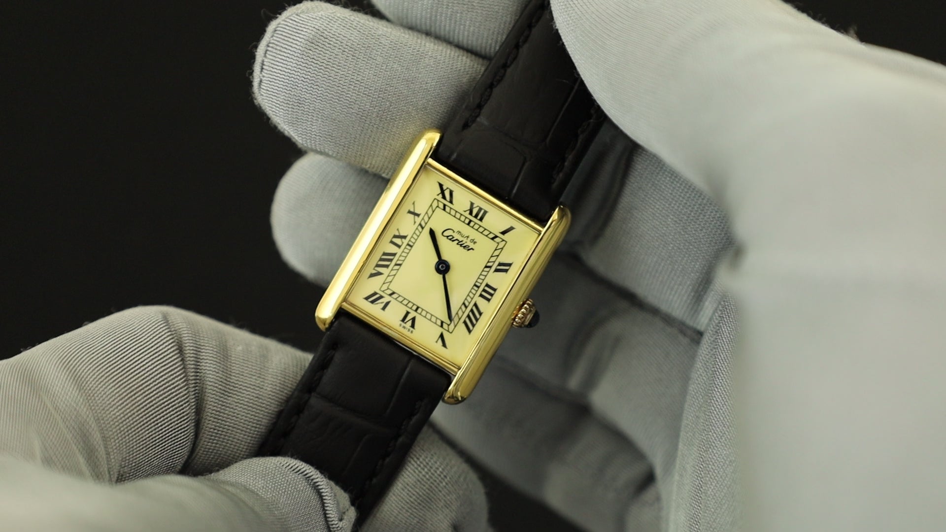 カルティエ マストタンク LM 590005 クォーツ SV925 革 純正尾錠(GP) アイボリーローマン文字盤 カルティエブティックにてコンプリートサービス済み