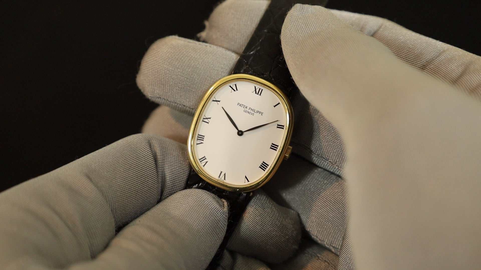 パテック・フィリップ ゴールデンエリプス 3848J 手巻き Cal.215 750YG 純正革ベルト 純正尾錠(750YG)ホワイトローマン文字盤 アーカイブ(1991年)オーバーホール済み