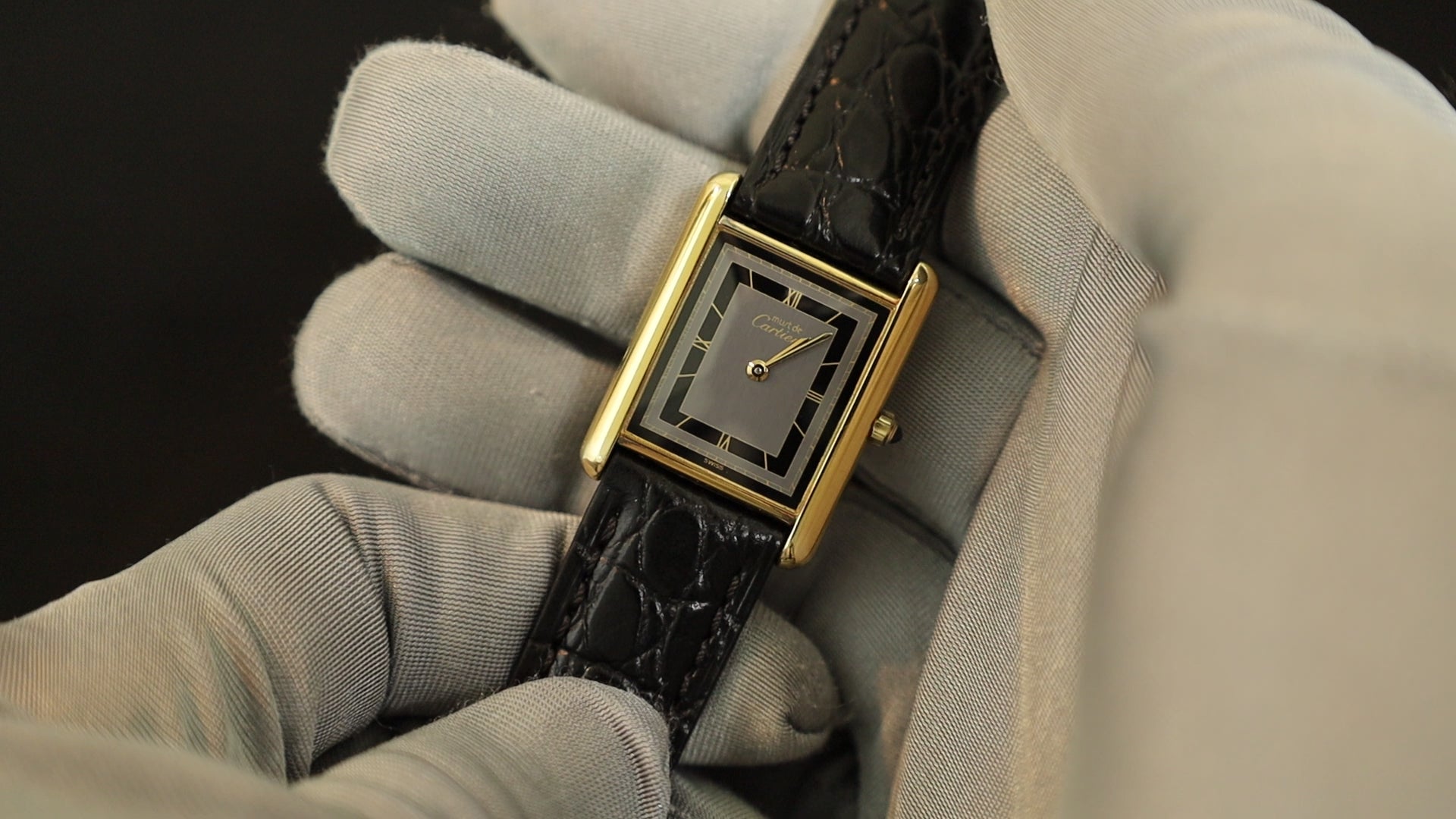 カルティエ マストタンク LM 6 81006 クォーツ Cal.81 SV925 革 純正尾錠(GP) グレー飛びローマン文字盤 保証書(無記載) 冊子 オーバーホール済み
