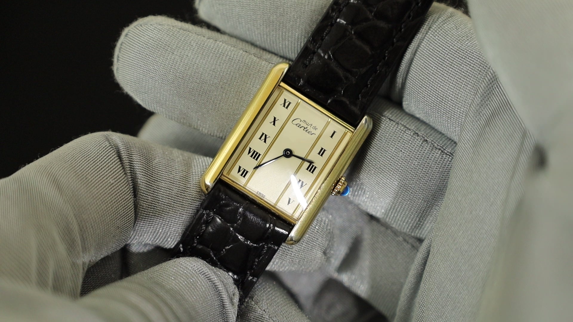カルティエ マストタンク LM 590005 クォーツ Cal.90 SV925 革 純正尾錠(GP)ストレートローマン文字盤 オーバーホール済み