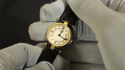 カルティエ マスト ヴァンドーム VLC SM 590004 クォーツ Cal.690 SV925 革 純正尾錠(GP)アイボリー4点ローマン文字盤 箱 冊子 保証書(1993年)オーバーホール済み