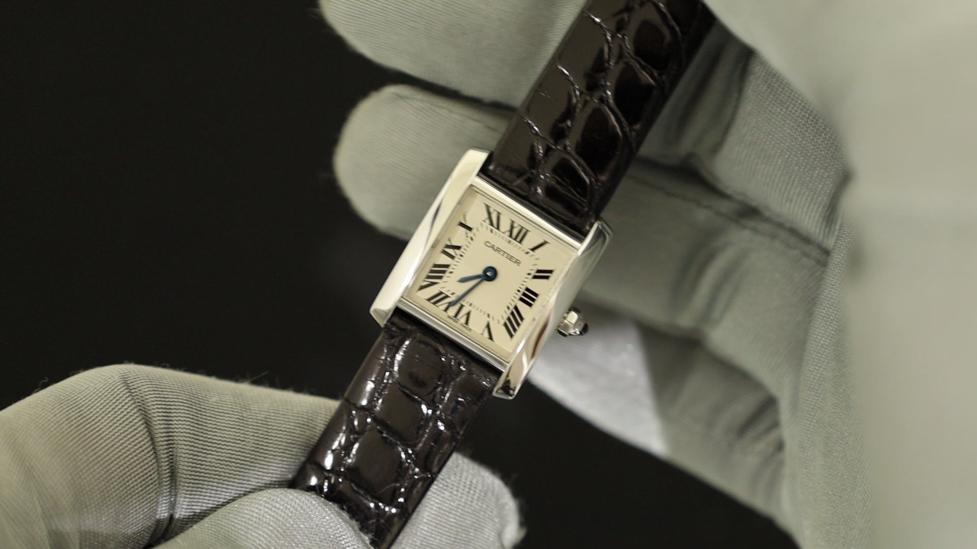 カルティエ タンクフランセーズ SM 2403 クォーツ Cal.057 750 革 純正尾錠(750)シルバーローマン文字盤 オーバーホール済み