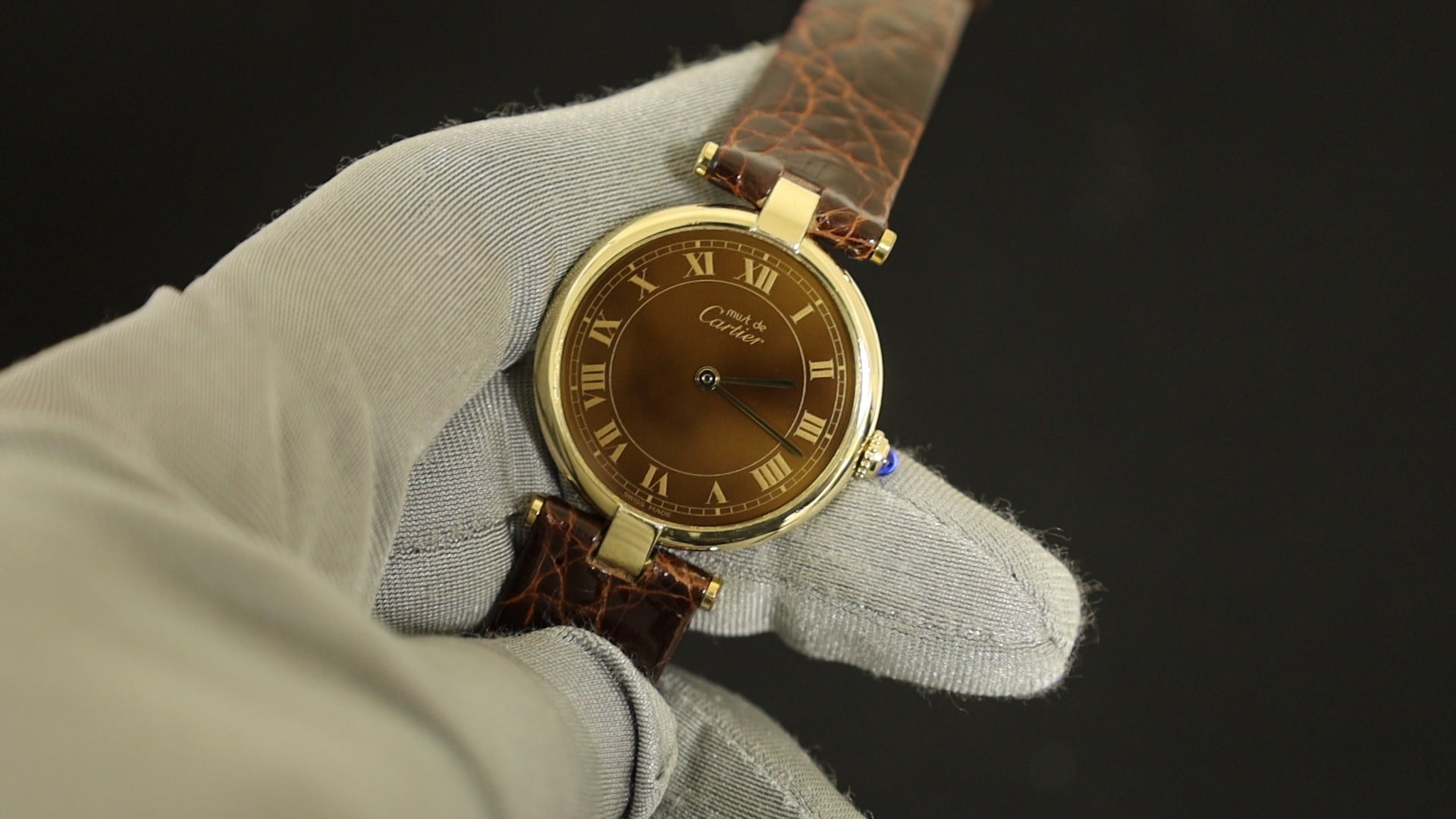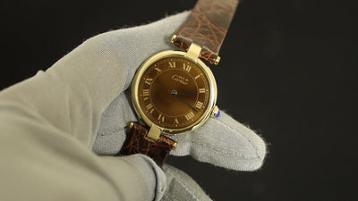 カルティエ マスト ヴァンドーム VLC LM 17 クォーツ SV925 革 純正尾錠(GP)マホガニー文字盤 保証書(1982年) カルティエブティックにてコンプリートサービス済み