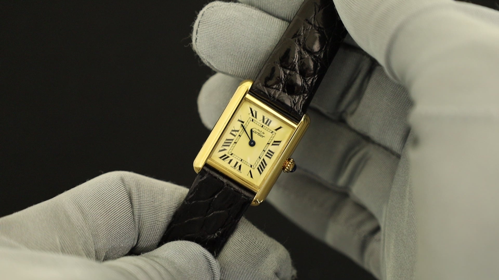 カルティエ マストタンク MM 2415 クォーツ Cal.057 SV925 革 純正尾錠(GP) アイボリーローマン文字盤 オーバーホール済み