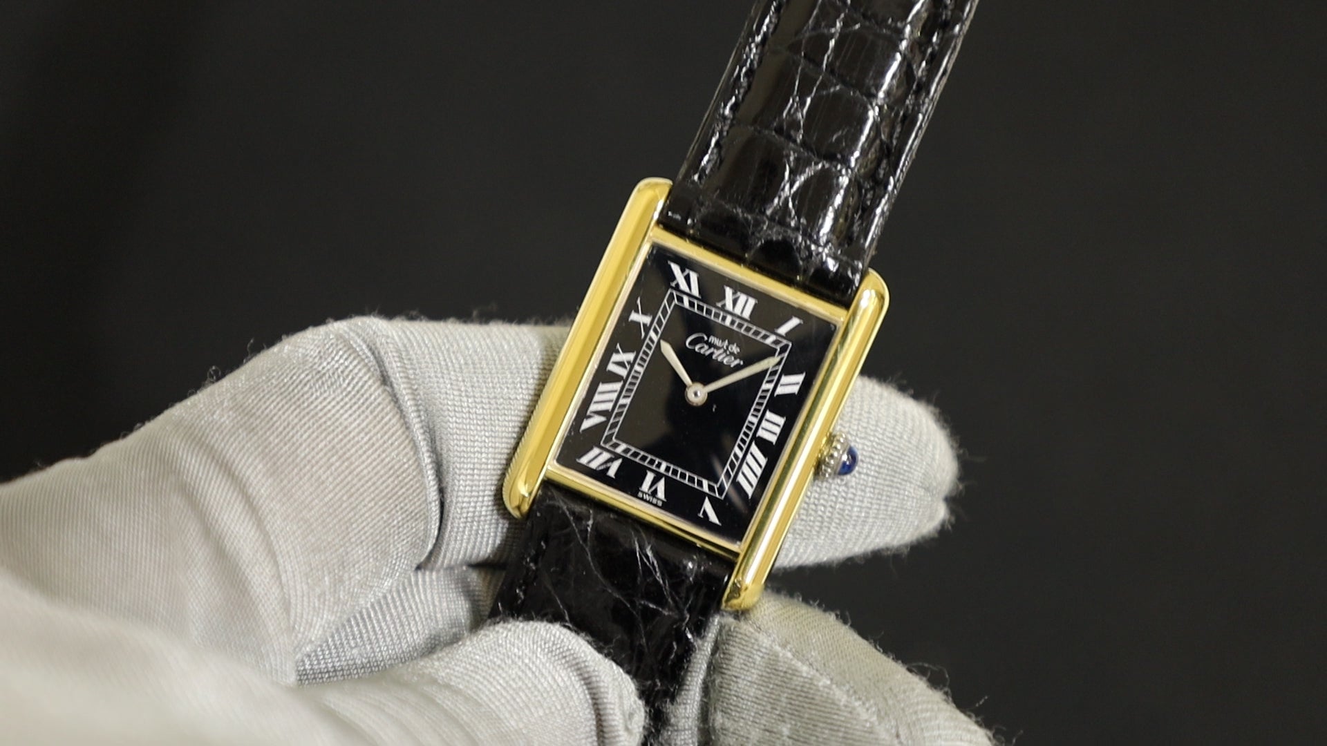 カルティエ マストタンク LM 手巻き Cal.- SV925 革 純正尾錠(GP)ブラックローマン文字盤 1976年頃~1981年頃 オーバーホール済み 新品仕上げ済み
