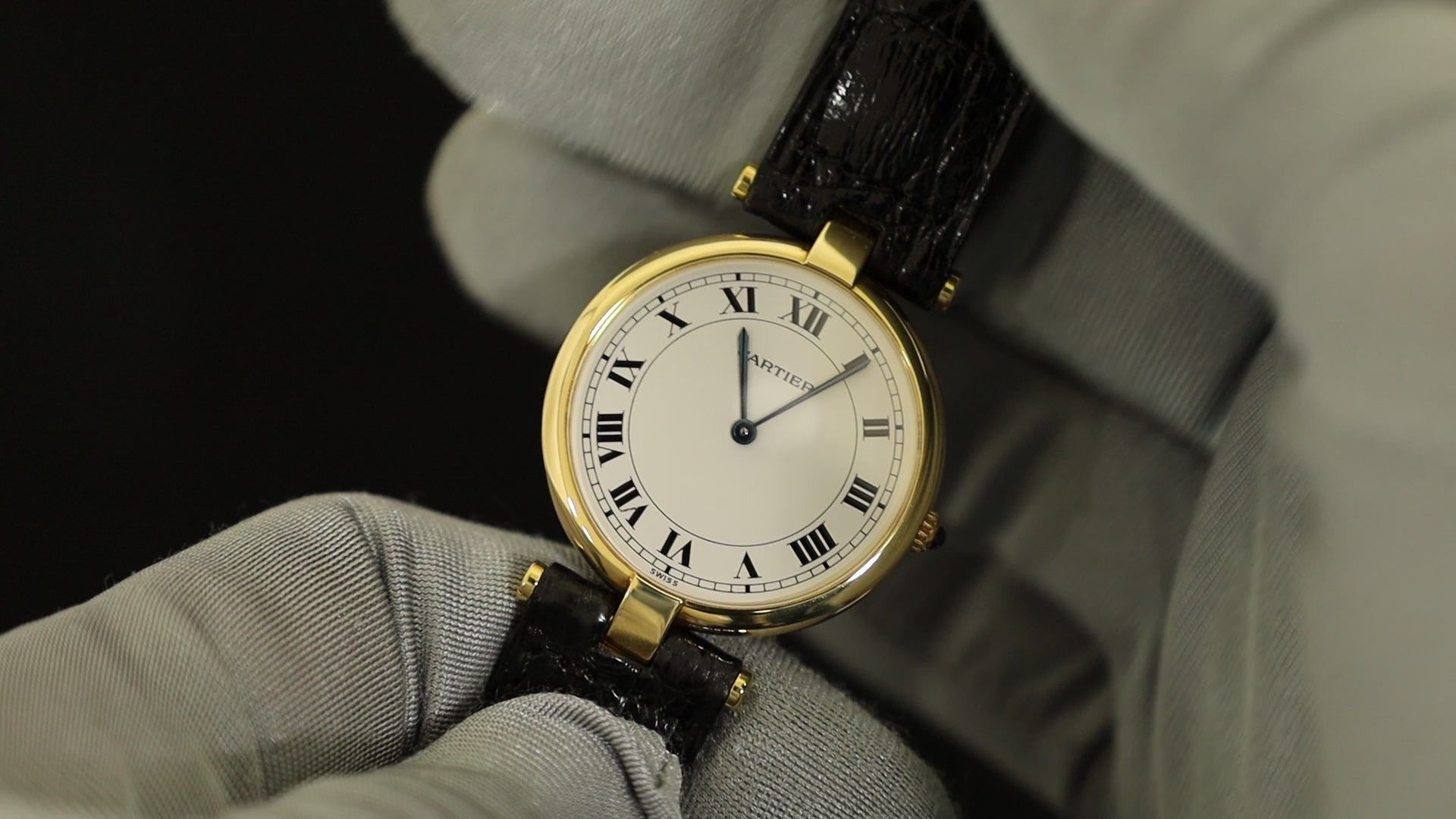 カルティエ ヴァンドーム VLC LM 881001 クォーツ Cal.- 750 純正革ベルト 純正尾錠 (GP)ホワイトローマン文字盤 30mm 箱 オーバーホール済み