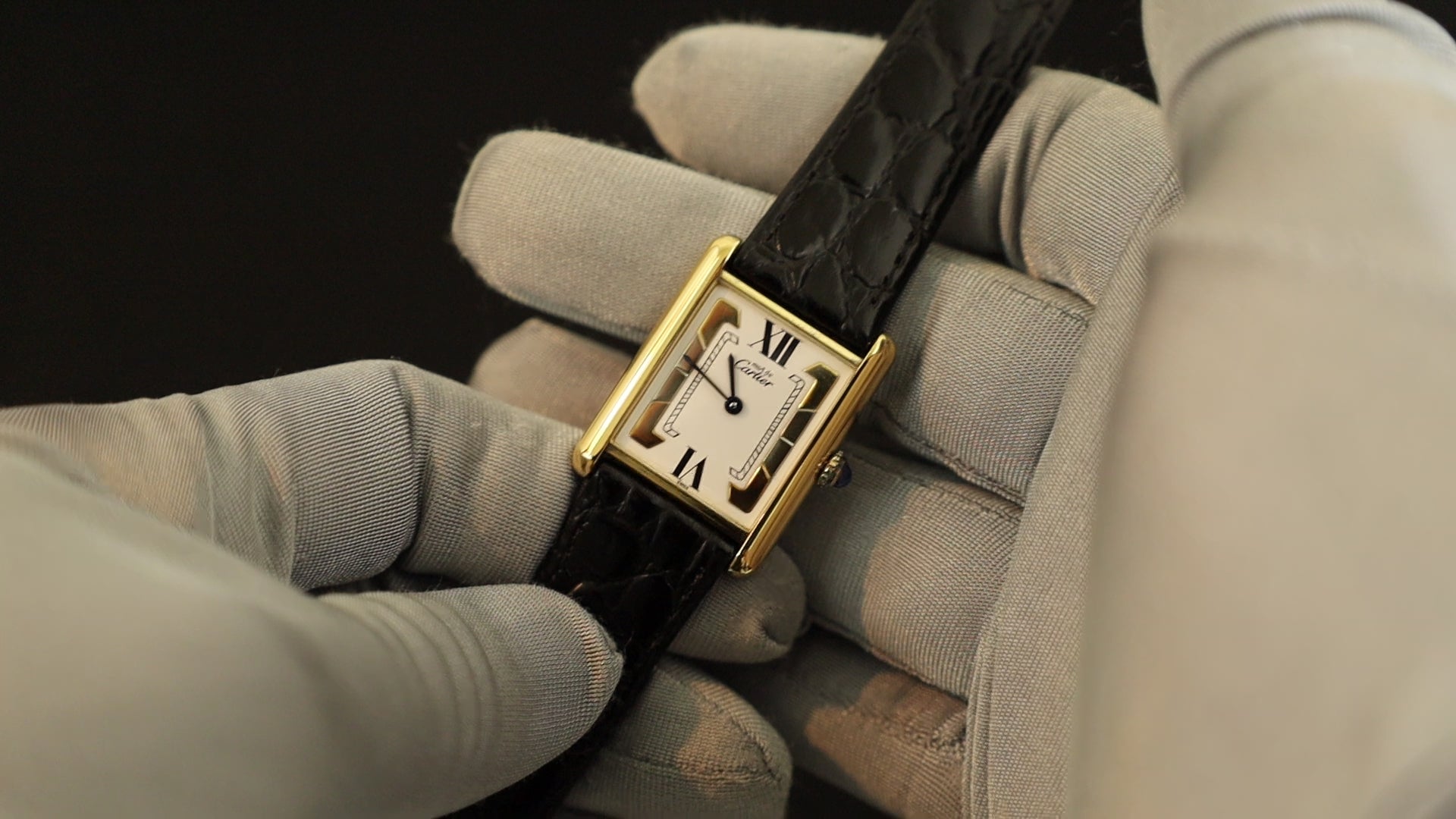カルティエ マストタンク LM 590005 クォーツ Cal.90 SV925 革 純正尾錠(GP) サイドトリニティ文字盤 オーバーホール済み