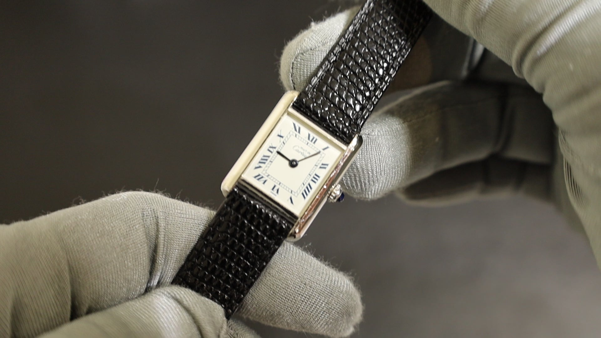 カルティエ マストタンク SM W1001543 / 6057002 クォーツ Cal.057 SV925 革 純正ピンバックル(SS)ホワイトローマン文字盤 (SWISS表記)オーバーホール済み