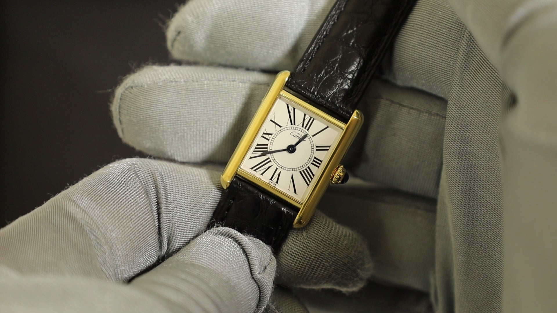 カルティエ マストタンク SM W1005554 / 5057001 クォーツ Cal.057 SV925 革 純正尾錠(GP)オパラン文字盤(SWISS表記) オーバーホール済み 新品仕上げ済み