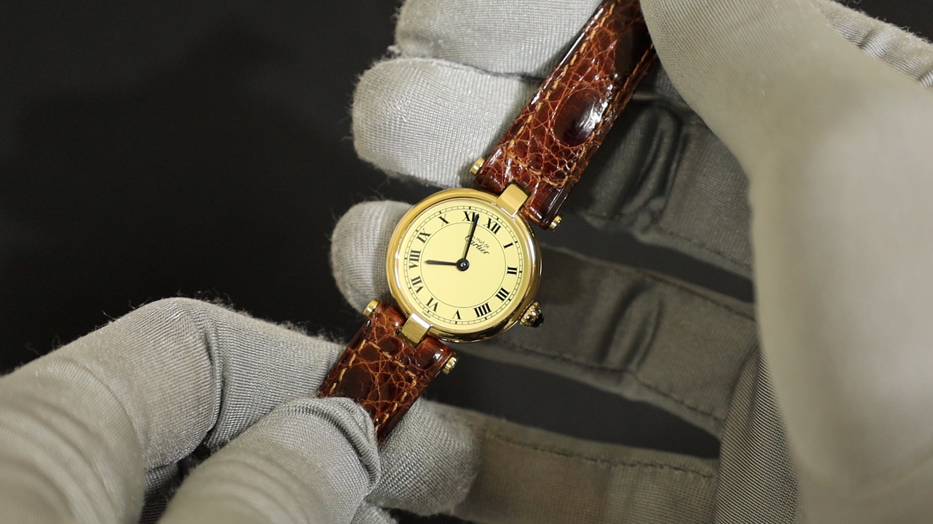 カルティエ マスト ヴァンドーム VLC SM 590004 クォーツ Cal.90 SV925 純正革ベルト 純正尾錠(GP)アイボリーローマン文字盤 箱 冊子 保証書(1994年)オーバーホール済み