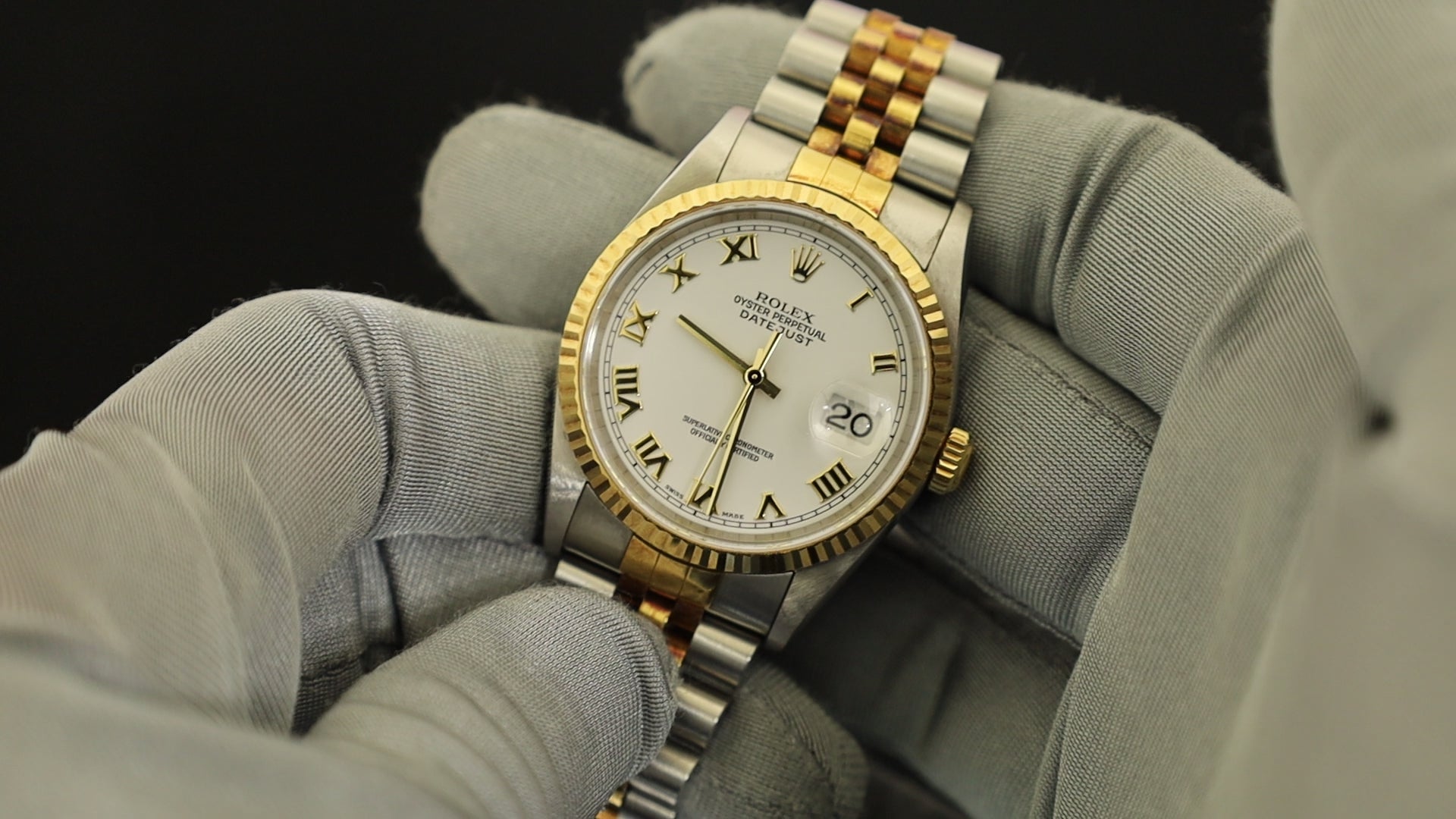 ロレックス デイトジャスト 36 16233 自動巻き Cal.3135 SS/YG SS/YG ホワイトシャンタン文字盤 P番(2000年) オーバーホール済み