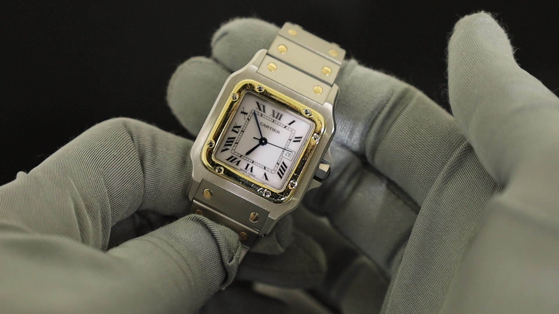 カルティエ サントス ガルベ LM 1553 自動巻き Cal.- SS/YG SS/YG ホワイト文字盤 カルティエブティックにてコンプリートサービス済み 新品ブレス交換済み