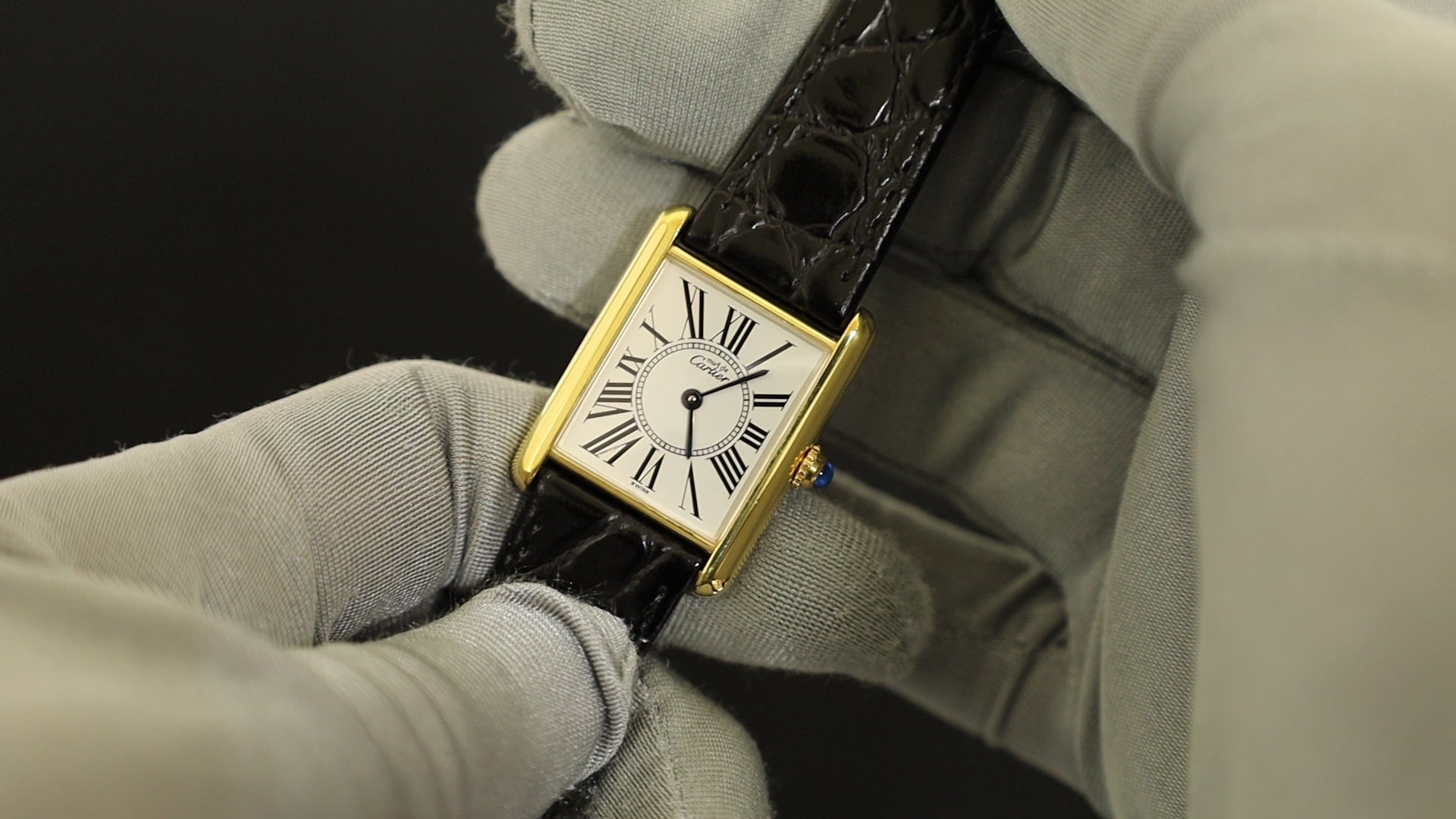 カルティエ マストタンク LM 590005 クォーツ Cal.90 SV925 革 純正尾錠(GP)オパラン文字盤 オーバーホール済み 新品仕上げ済み