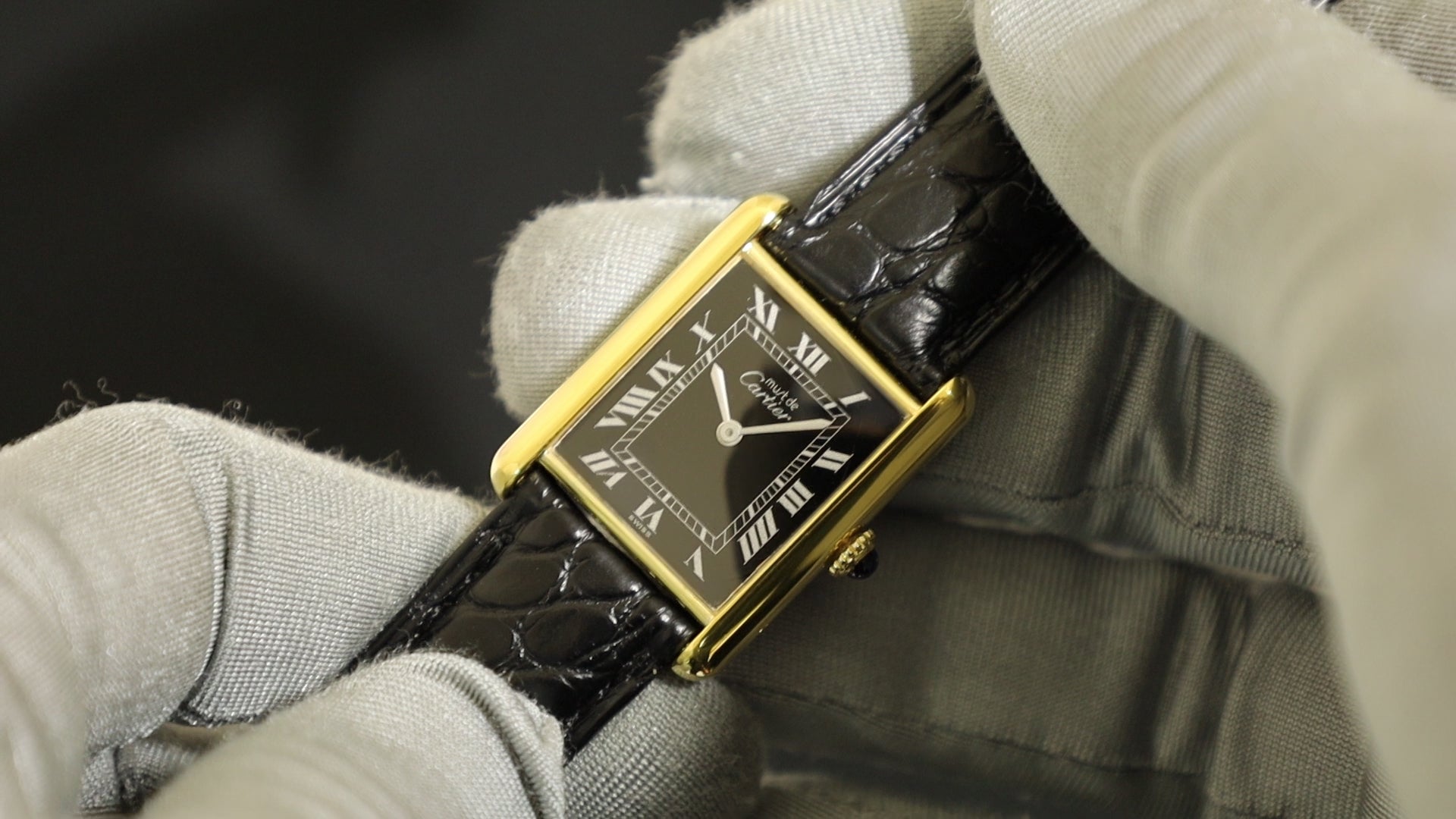 カルティエ マストタンク LM 手巻き Cal.78-1 SV925 純正革ベルト 純正Dバックル(GP)ブラックローマン文字盤(SWISS表記)1976年頃~1981年頃 オーバーホール済み 新品仕上げ済み