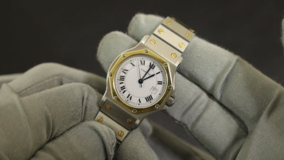 カルティエ サントス オクタゴン LM 2966 自動巻き Cal.ETA2671 SS/YG SS/YG ホワイトローマン文字盤(SWISS表記) 箱 冊子 保証書(1986年)タグ オーバーホール済み