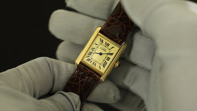 カルティエ マストタンク MM 2415 クォーツ Cal.057 SV925 革 純正尾錠(GP) アイボリーローマン文字盤(ガラス小傷) 箱 冊子 保証書(2004年)オーバーホール済み