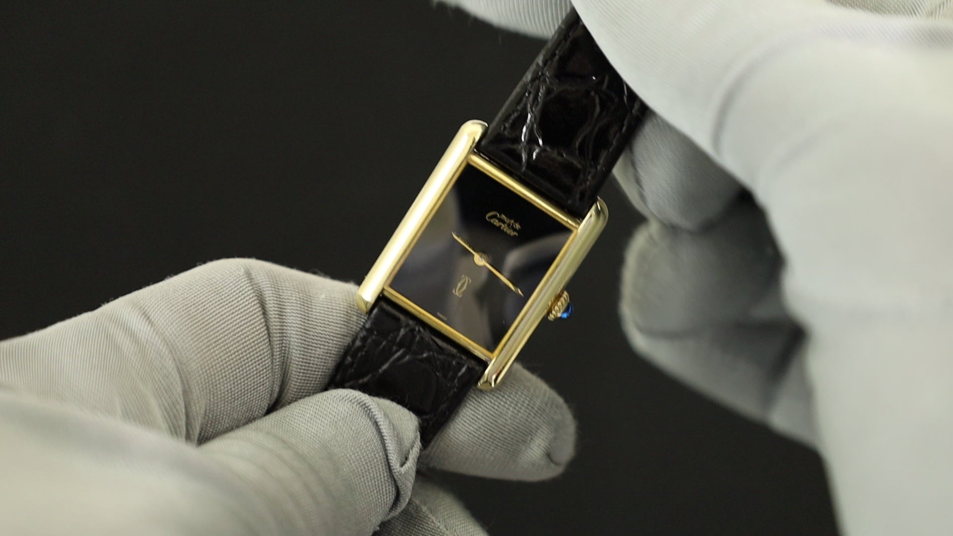 カルティエ マストタンク LM 手巻き Cal.78-1 SV925 革 純正尾錠(GP)オニキス文字盤 オーバーホール済み
