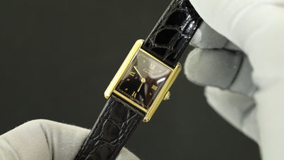カルティエ マストタンク LM 590005 クォーツ Cal.90 SV925 革 純正尾錠(GP) ブラック飛びローマン文字盤 オーバーホール済み