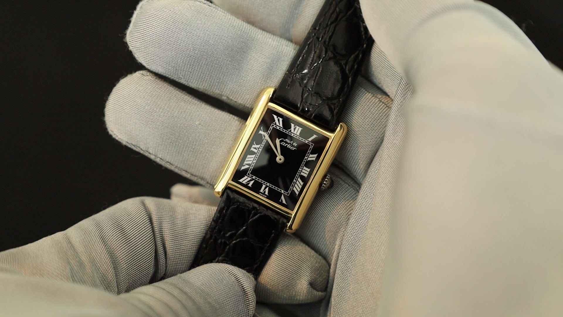 カルティエ マストタンク LM 手巻き Cal.78-1 SV925 革 純正尾錠(GP)ブラックローマン文字盤 オーバーホール済み 新品仕上げ済み