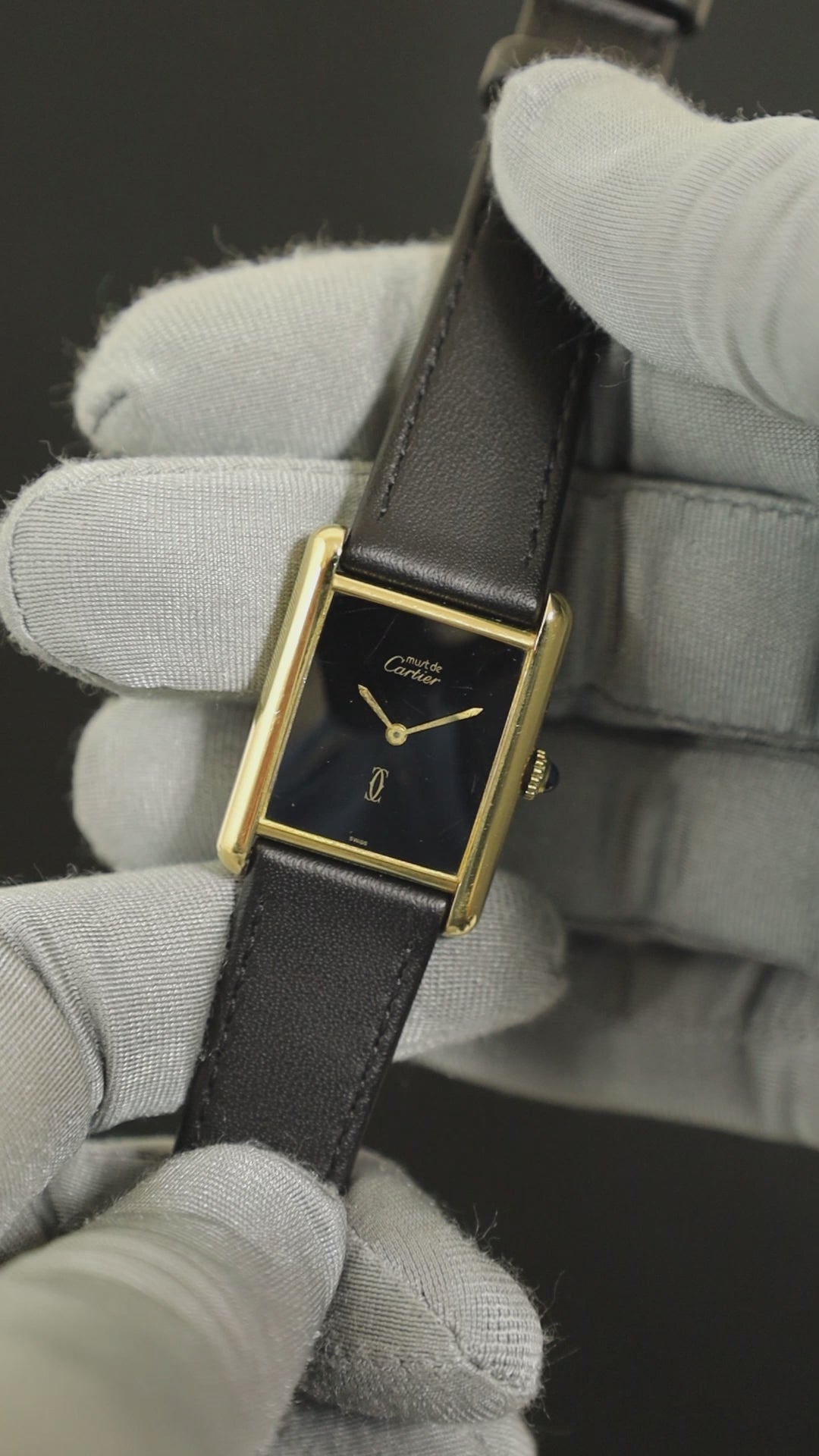 カルティエ マストタンク LM 手巻き Cal.78-1 SV925 革 純正尾錠(GP) オニキス文字盤 オーバーホール済み