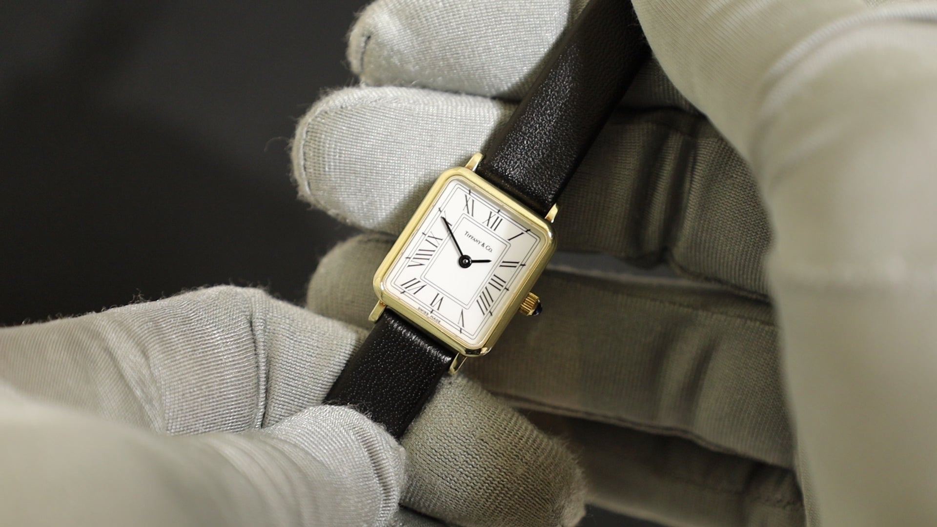 ティファニ レクタンギュラー 60-217 クォーツ Cal.976.001 14KYG 革 純正尾錠(GP) ホワイト文字盤 保証書(1995年) 箱 ケース オーバーホール済み