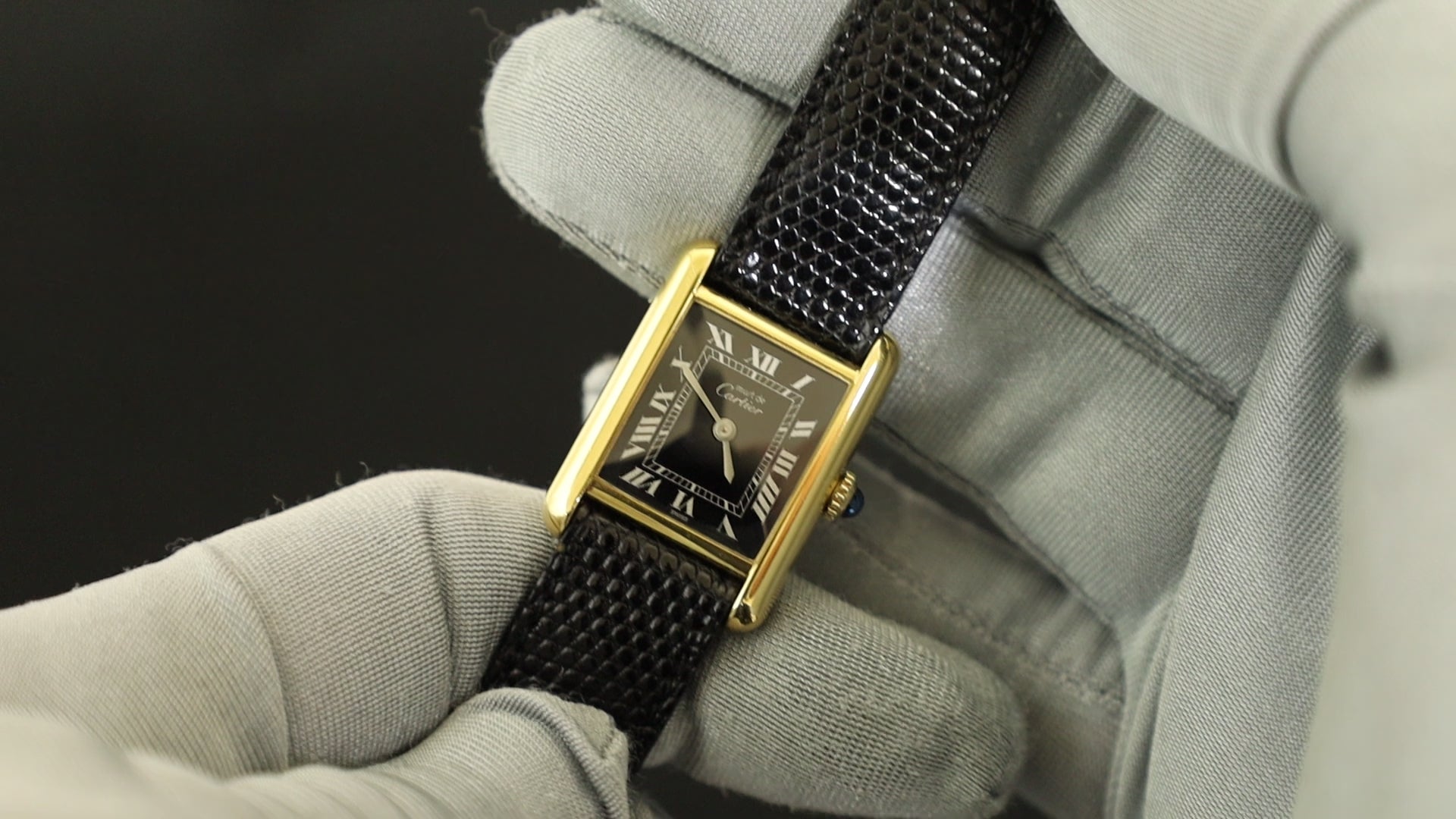 カルティエ マストタンク SM 手巻き Cal.78-1 SV925 純正革ベルト 純正尾錠(GP) ブラックローマン文字盤 オーバーホール済み