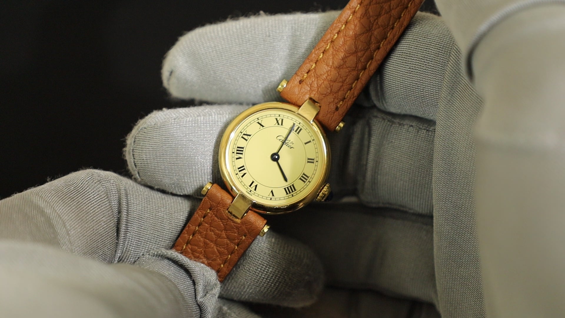カルティエ マスト ヴァンドーム VLC SM 590004 クォーツ Cal.90 SV925 革 純正尾錠(GP)アイボリーローマン文字盤 オーバーホール済み