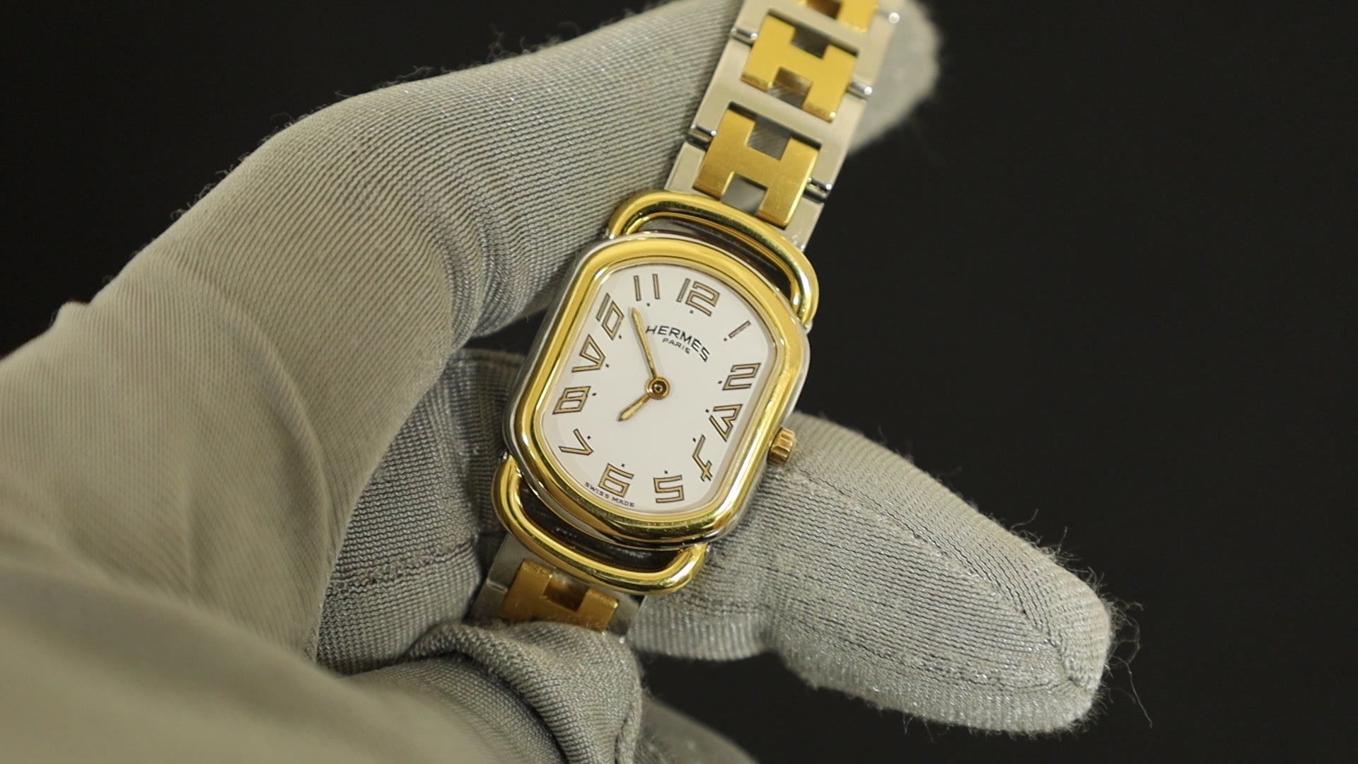 エルメス ラリー クォーツ 77.03 Cal.976.001 SS/GP SS/GP ホワイト文字盤 ケース オーバーホール済み