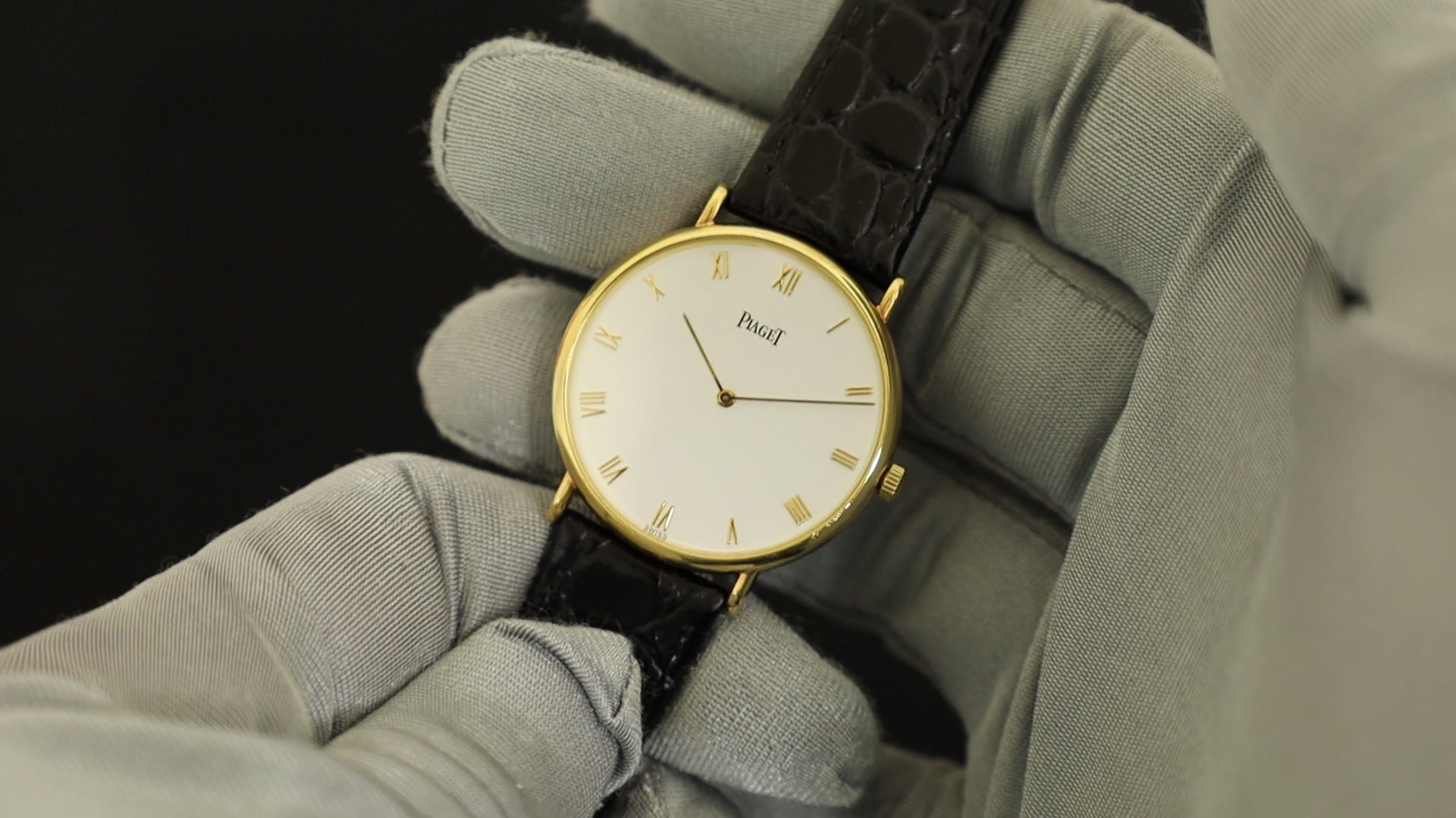 ピアジェ ラウンド 9035N 手巻き Cal.9P2 750 革 純正尾錠(GP) ホワイト文字盤 32mm 保証書 オーバーホール済み
