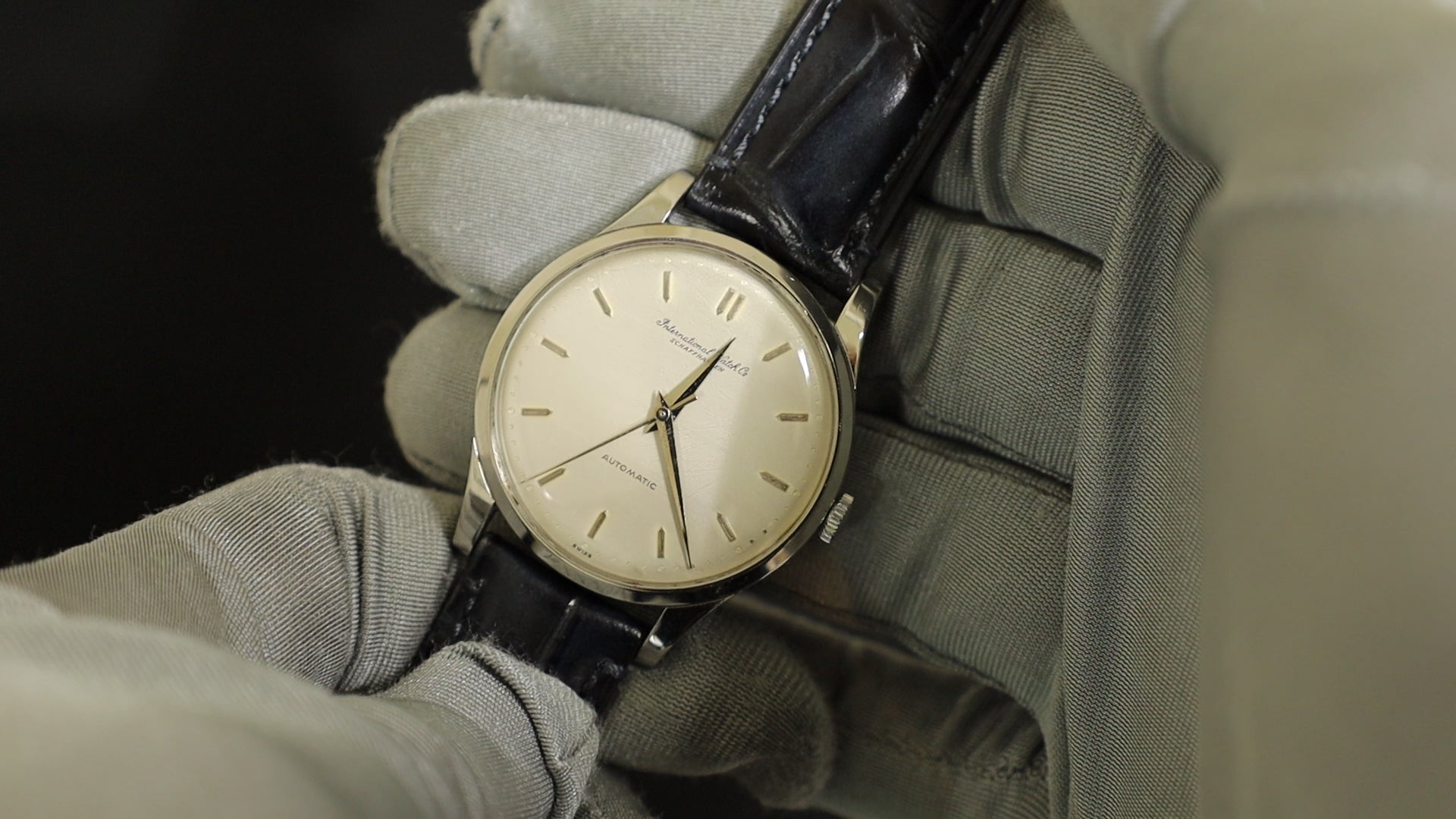 IWC オールドインター ラウンド 自動巻き Cal.C.853 SS 革 社外尾錠(SS)シルバー文字盤 オーバーホール済み アイダブリュシー