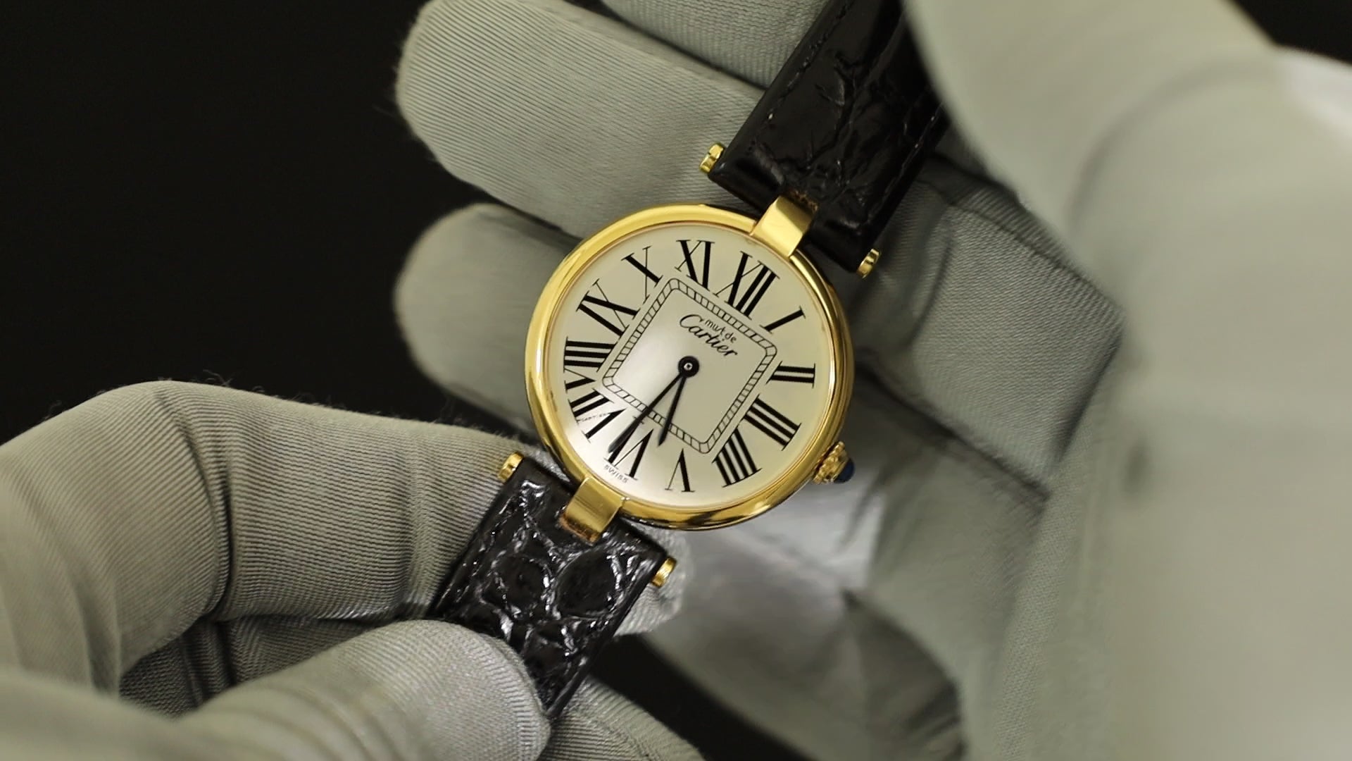 カルティエ マスト ヴァンドーム VLC LM W1005454 / 590003 クォーツ Cal.90 SV925 革 純正尾錠(GP) オパラン文字盤 保証書(1997年 / 個人名記載有) オーバーホール済み