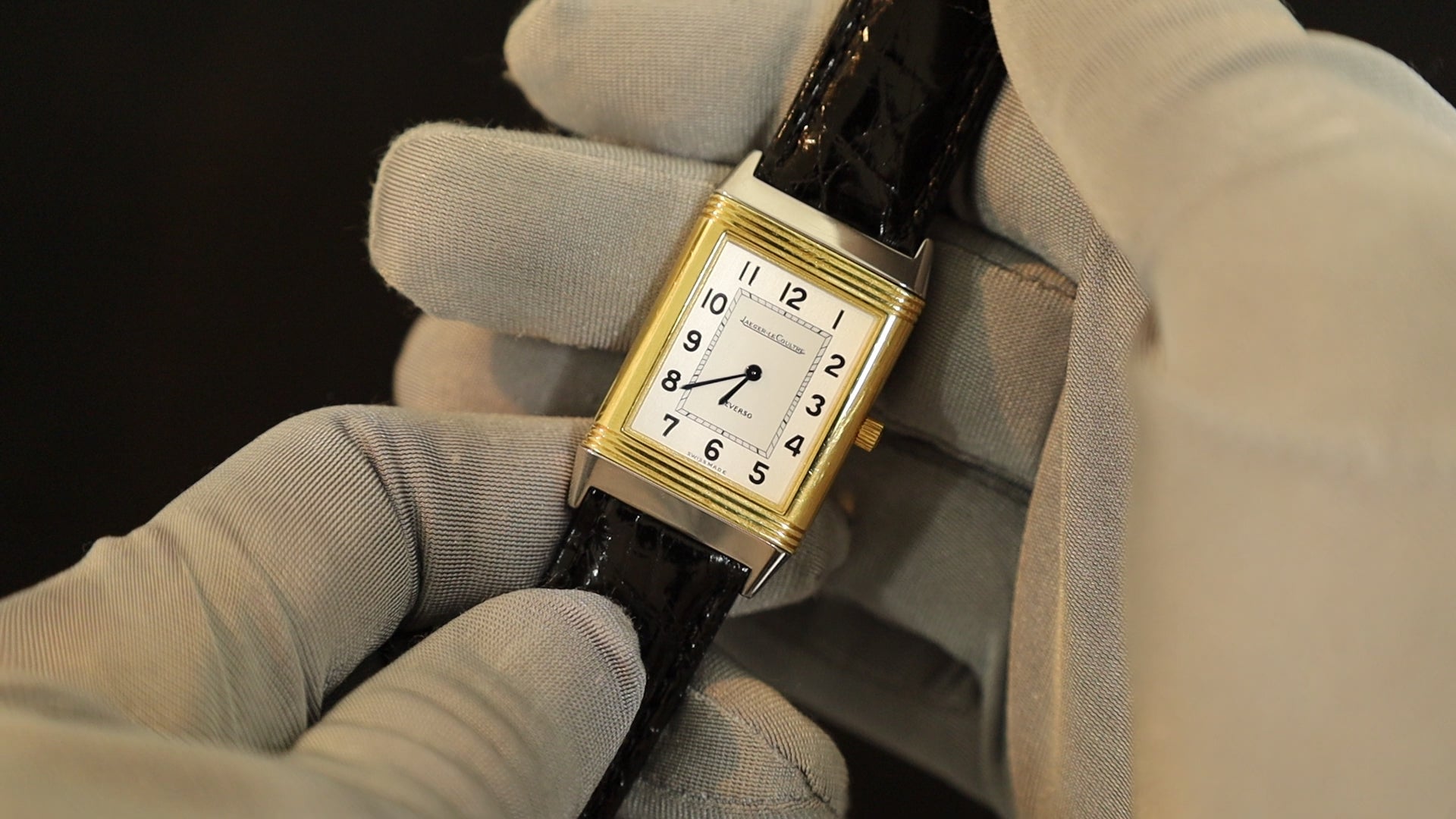 ジャガー・ルクルト レベルソ クラシック 250.8.08 クォーツ SS/YG 革 純正尾錠(SS)シルバーアラビア文字盤 オーバーホール済み ※ケース裏彫りあり