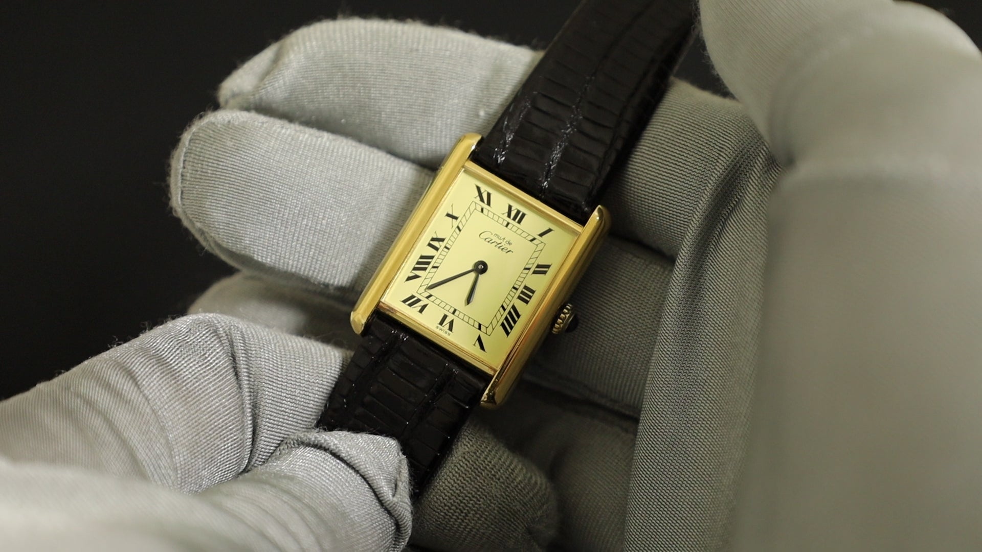 カルティエ マストタンク LM 手巻き Cal.78-1 SV925 革 純正尾錠(GP) アイボリーローマン文字盤(SWISS表記)オーバーホール済み