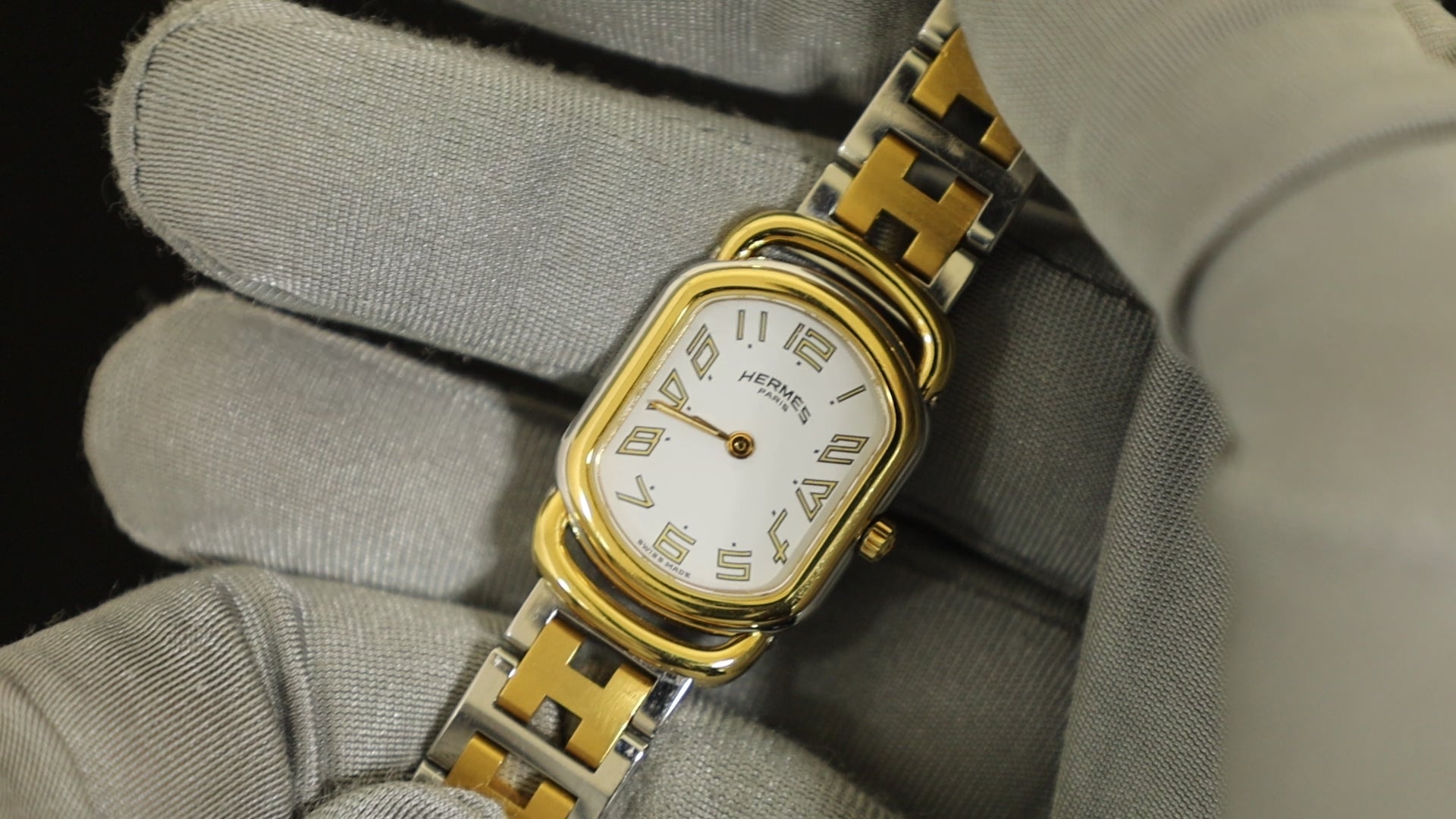 エルメス ラリー クォーツ Cal.976.001 SS/GP SS/GP ホワイト文字盤 オーバーホール済み