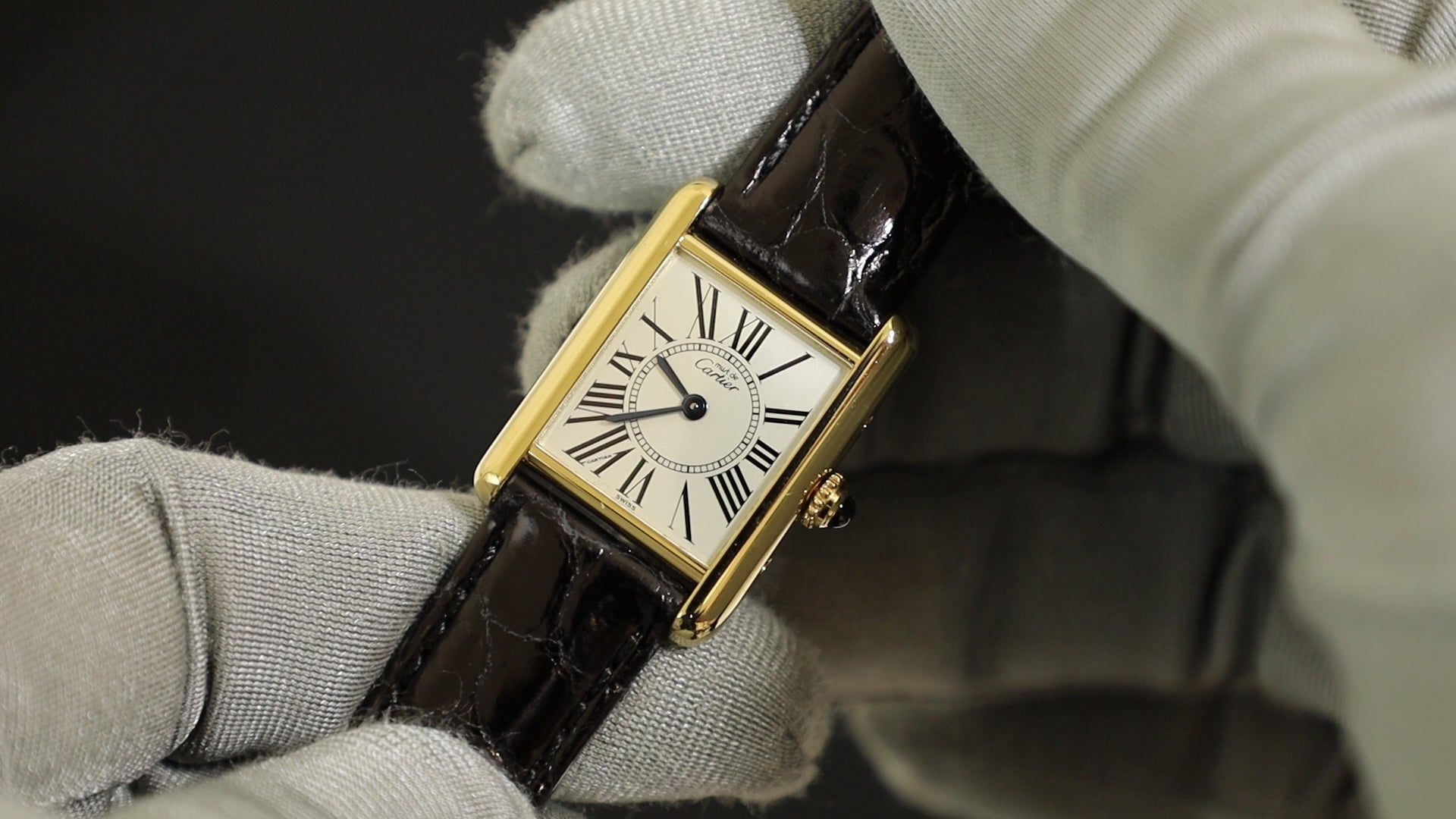 カルティエ マストタンク SM 5057001 クォーツ Cal.- SV925 革 純正Dバックル(GP)オパラン文字盤(SWISS表記)箱 冊子 保証書(1995年)カルティエブティックにてコンプリートサービス済み