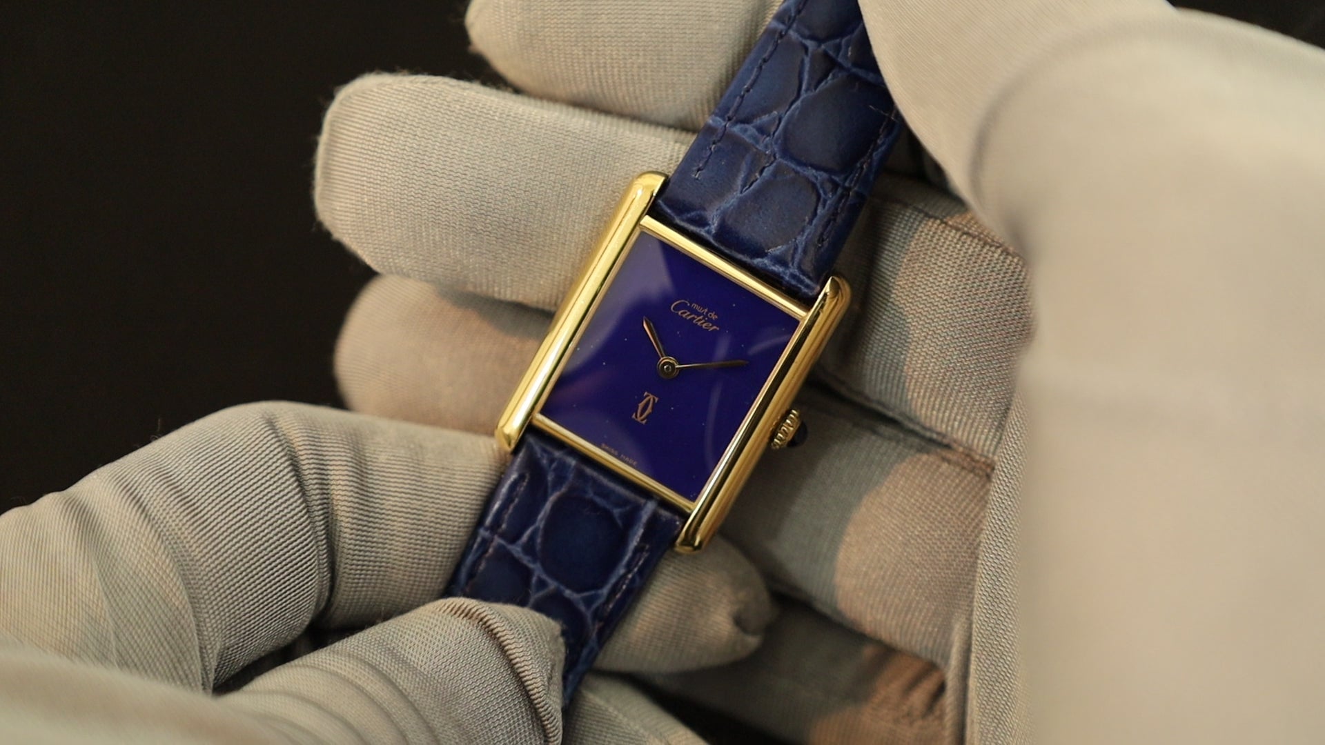 カルティエ マストタンク LM 手巻き SV925 革 純正尾錠(GP)ラピスラズリ文字盤 カルティエブティックにてコンプリートサービス済み