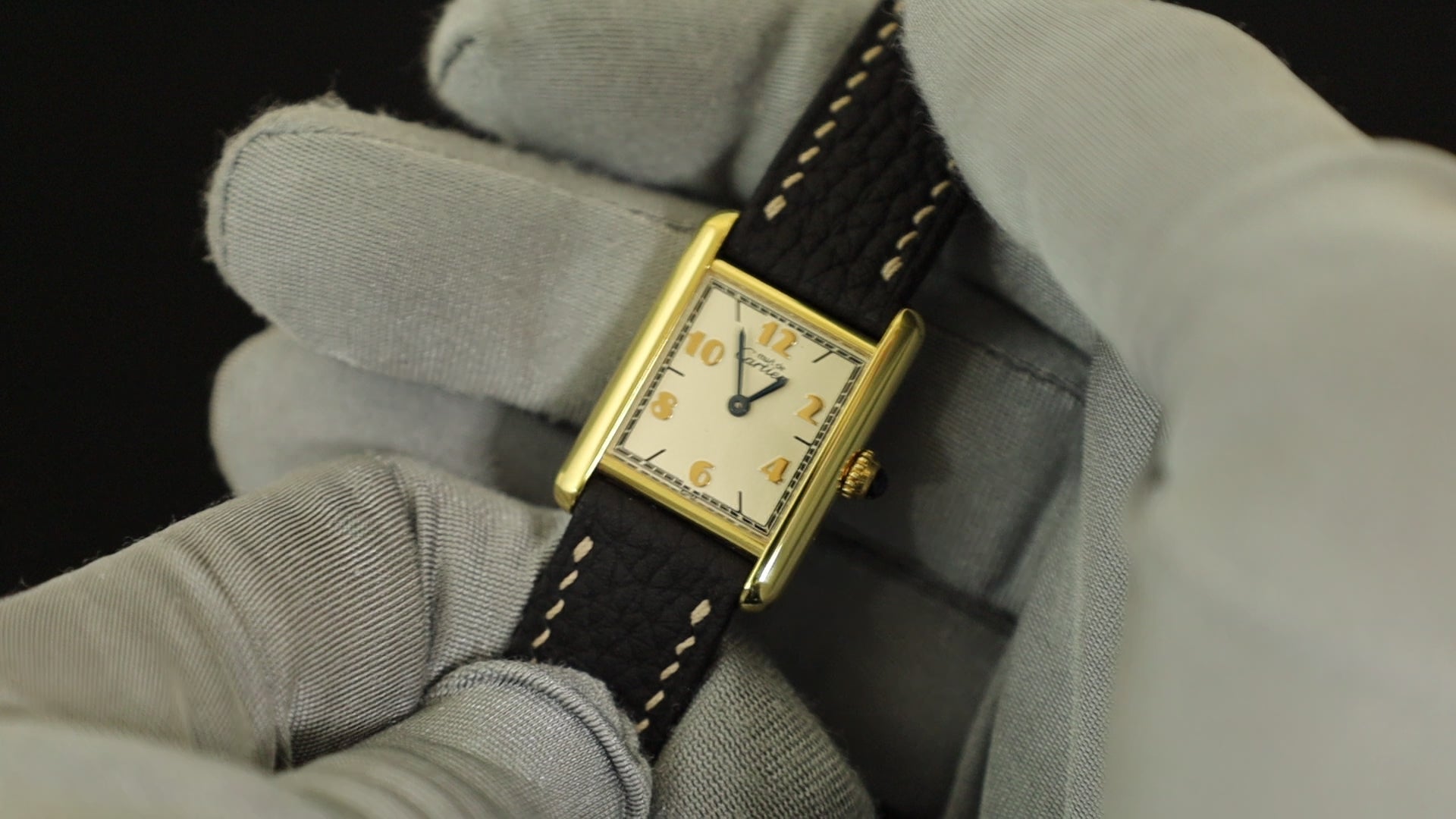 カルティエ マストタンク SM 5057001 クォーツ Cal.057 SV925 革 純正尾錠(GP)飛びアラビアCC文字盤 1982年頃~1995年頃 オーバーホール済み 新品仕上げ済み