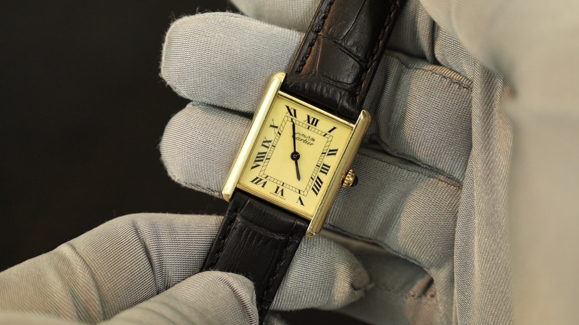 カルティエ マストタンク LM W1002753 / 590005 クォーツ SV925 革 尾錠(GP)アイボリーローマン文字盤 カルティエブティックにてコンプリートサービス(フルメンテナンス)済み