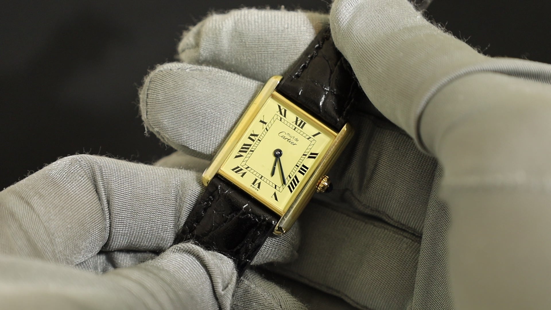 カルティエ マストタンク LM 590005 クォーツ Cal.90 SV925 革 純正尾錠(GP)アイボリーローマン文字盤(SWISS表記)オーバーホール済み