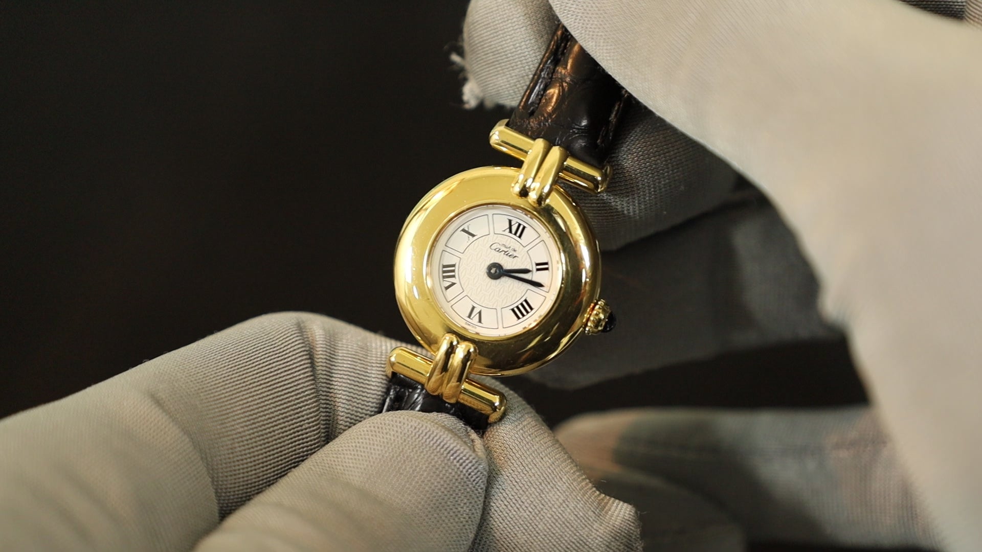 カルティエ マストコリゼ W1009954/1902 クォーツ Cal.90 SV925 革 純正Dバックル(GP) ホワイトローマンCC文字盤 保証書(1999年) オーバーホール済み