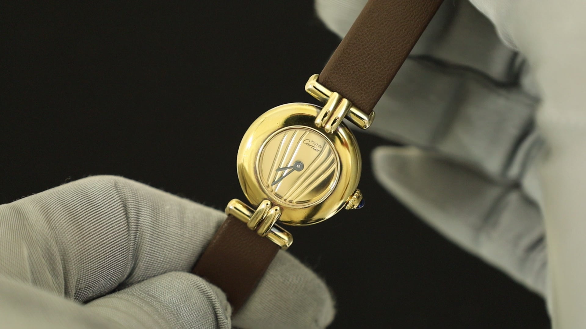カルティエ マストコリゼ 590002 クォーツ Cal.690 SV925 革 純正尾錠(GP) ゴールド文字盤 オーバーホール済み